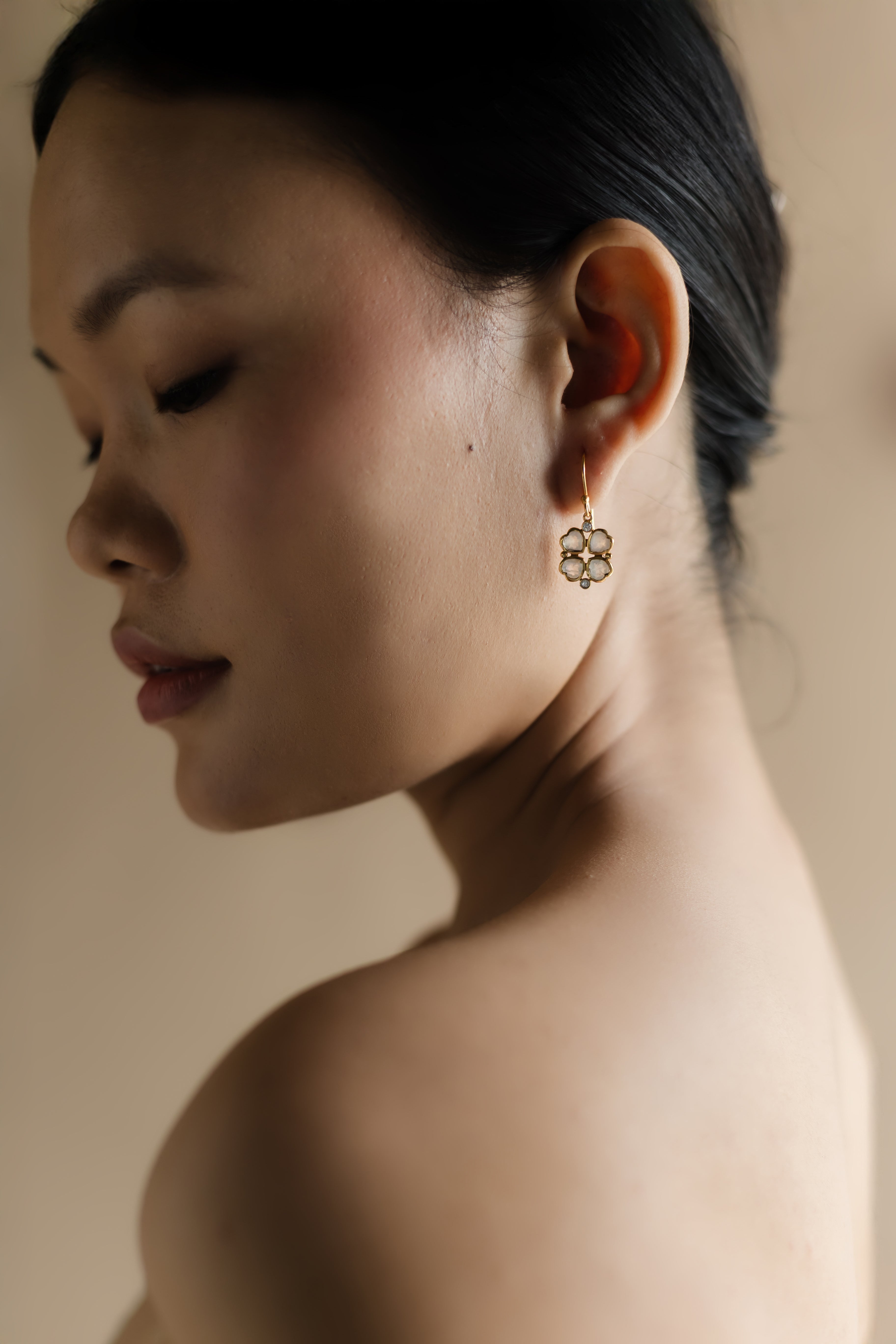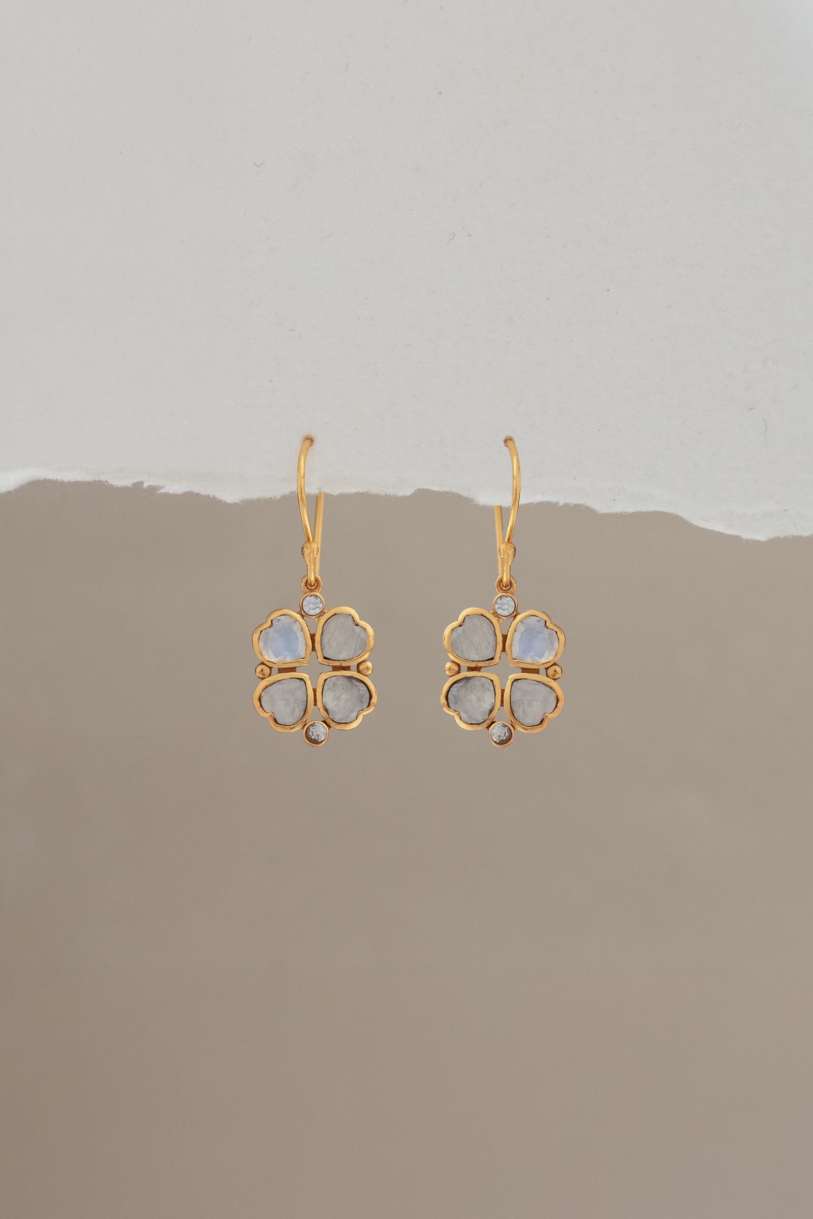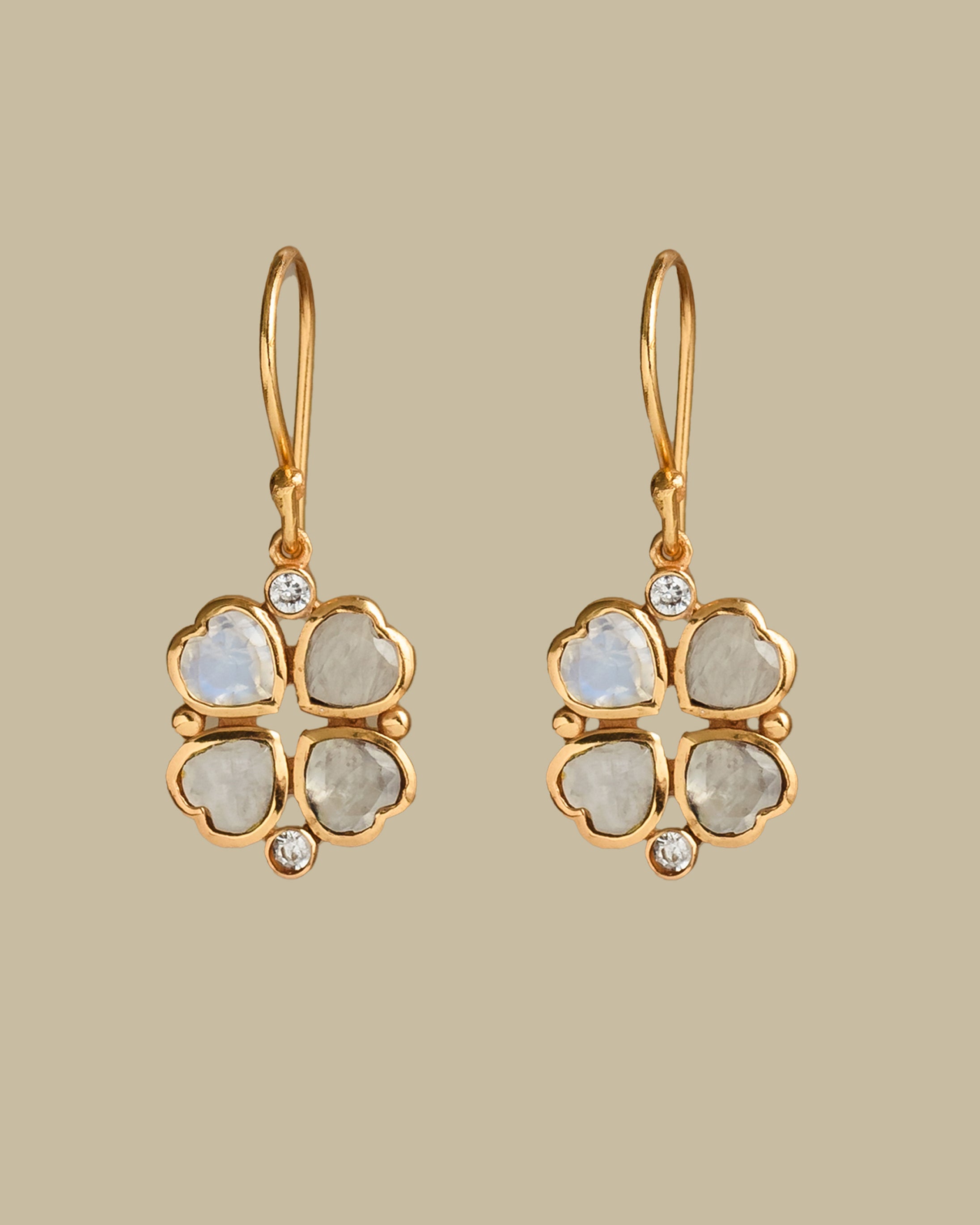 A handmade clover design with luminous moonstone and cubic zirconia – Lucy is the perfect blend of charm and elegance.