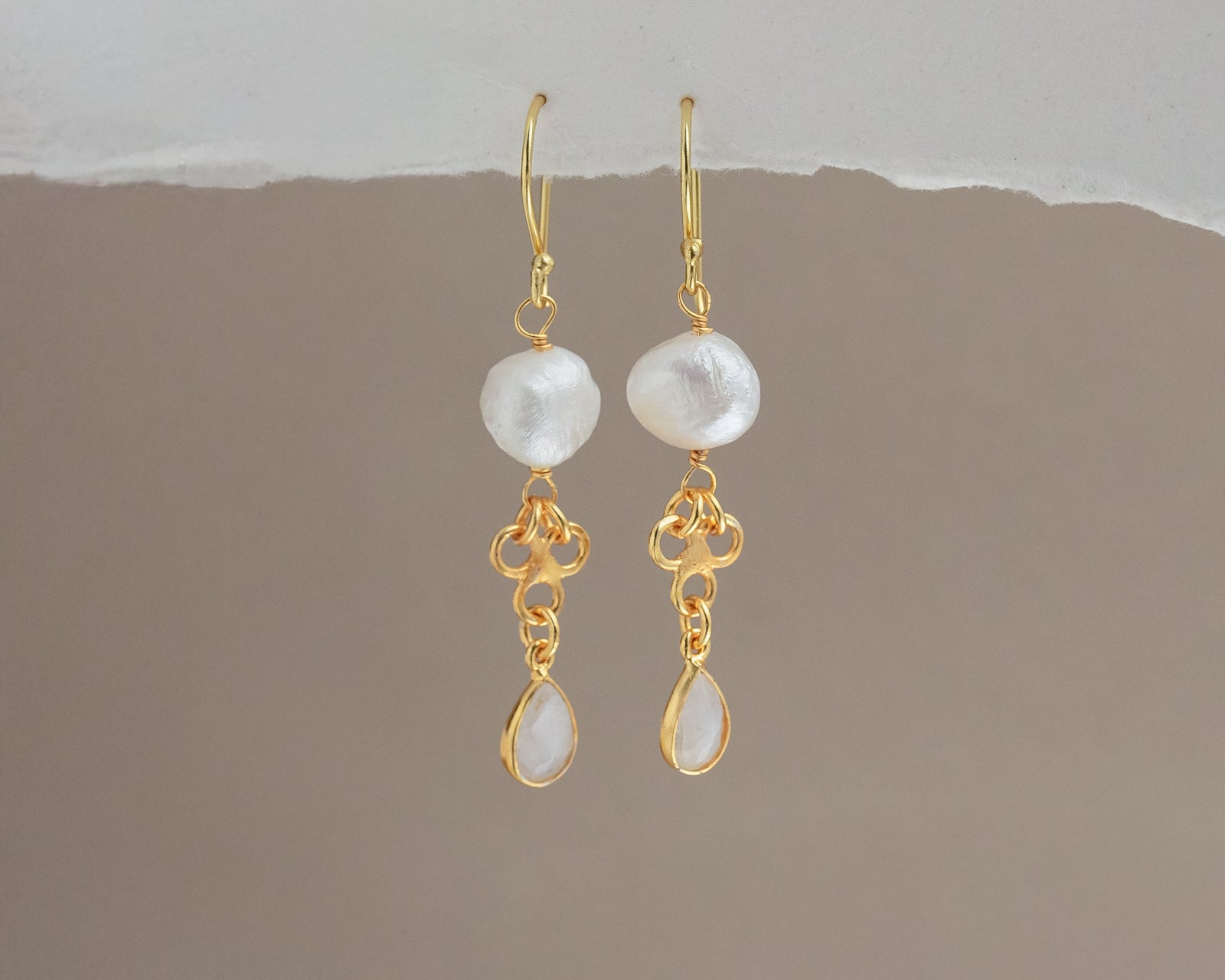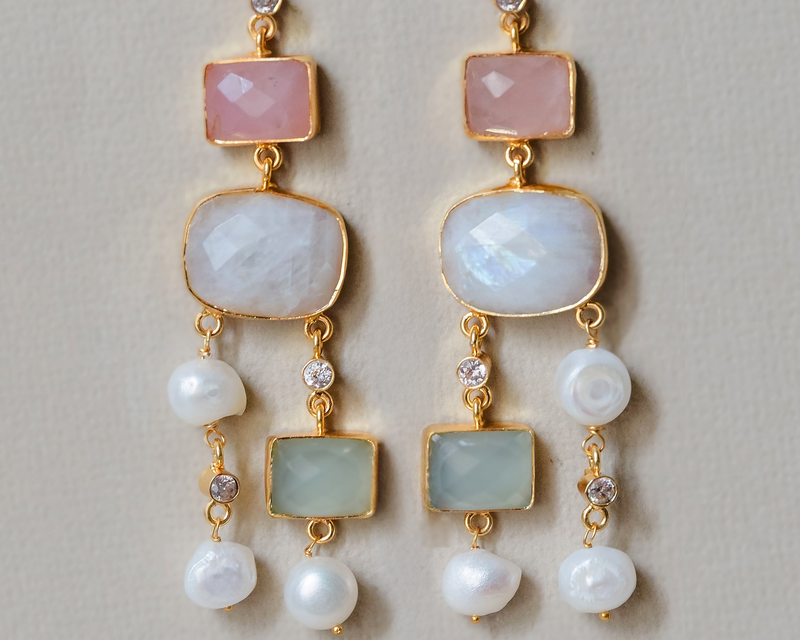 BYZANTINE EARRINGS MOONSTONE AQUA AND ROSE QUARTZ