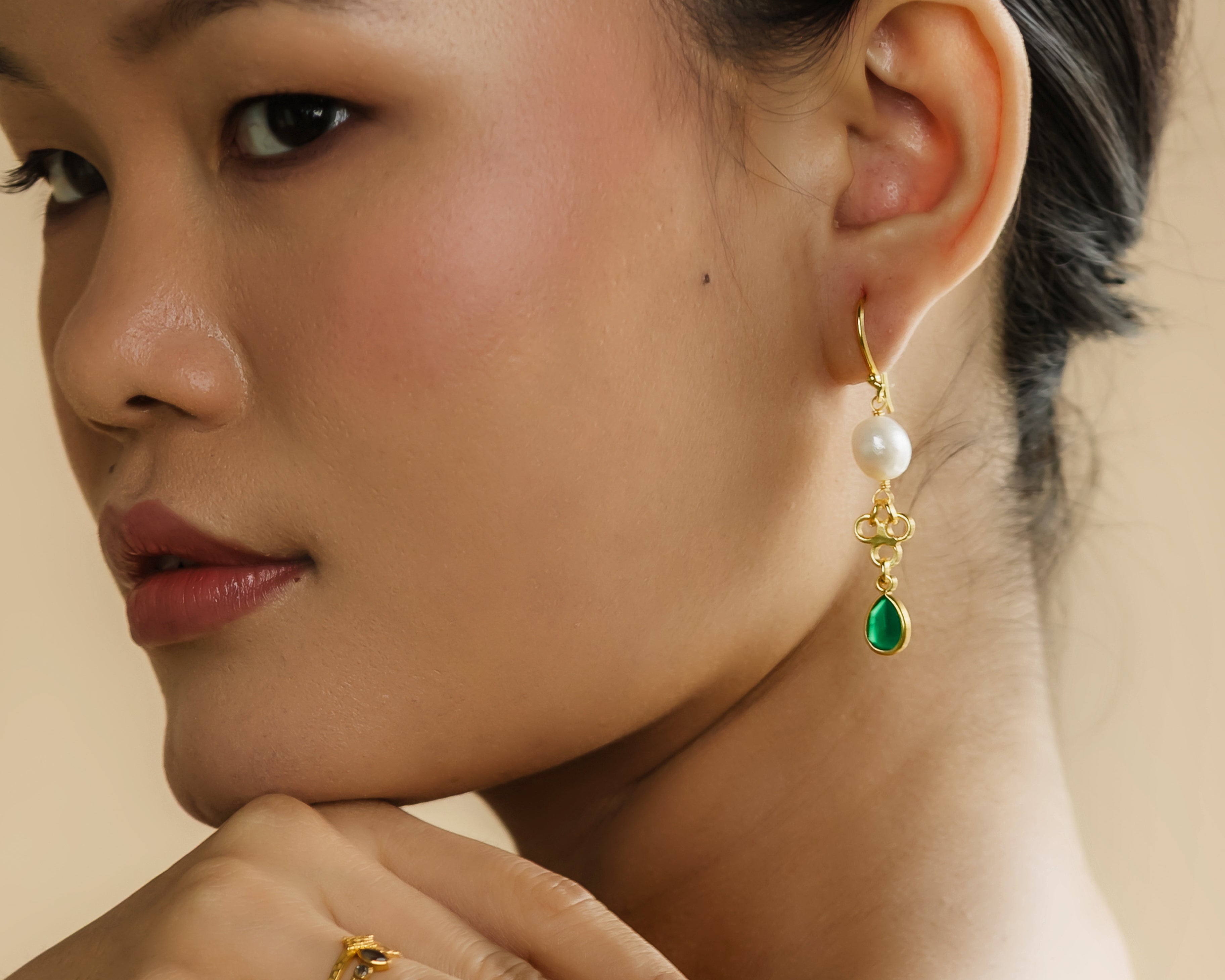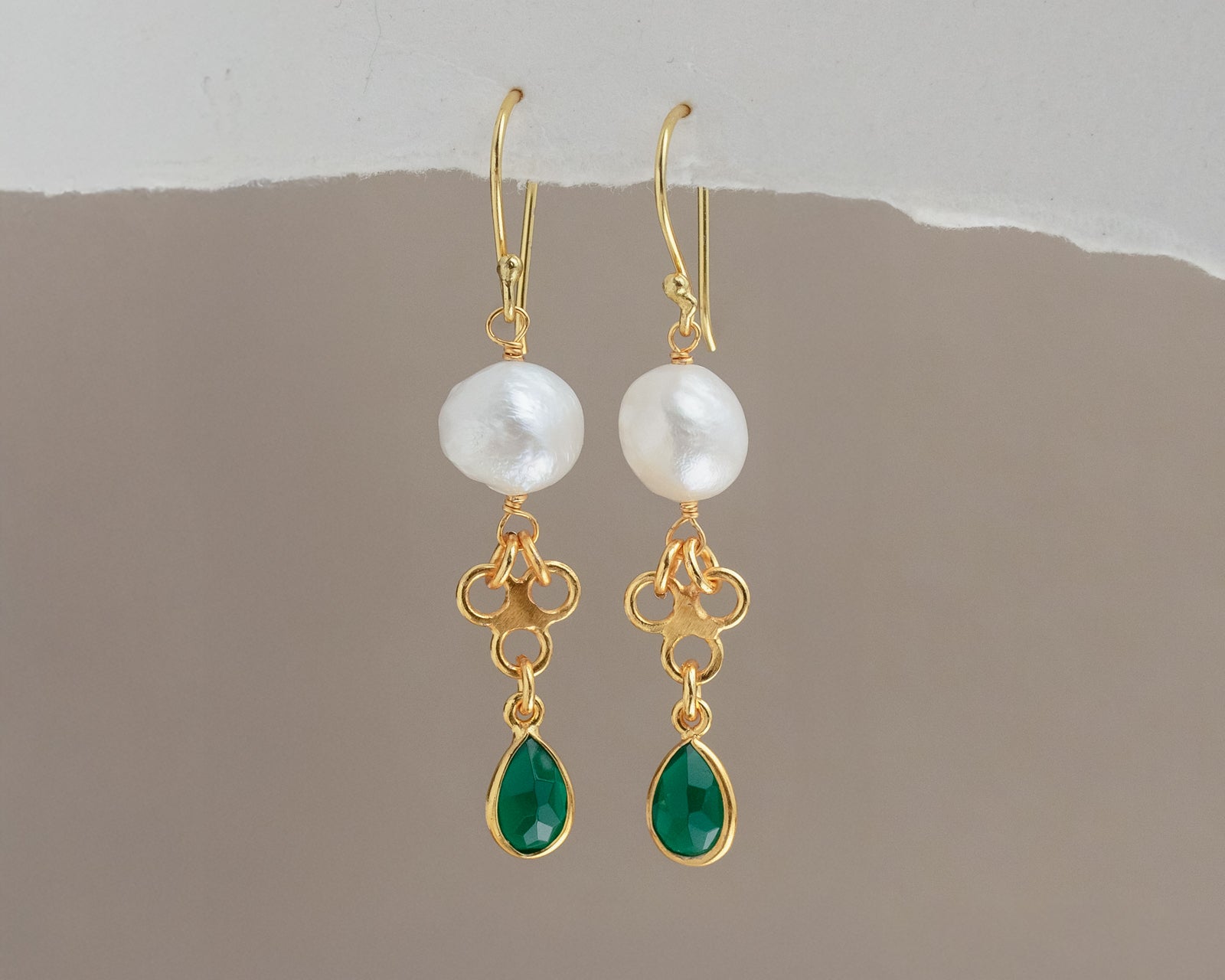PERNIA EARRINGS IN OPALITE AND GREEN ONYX