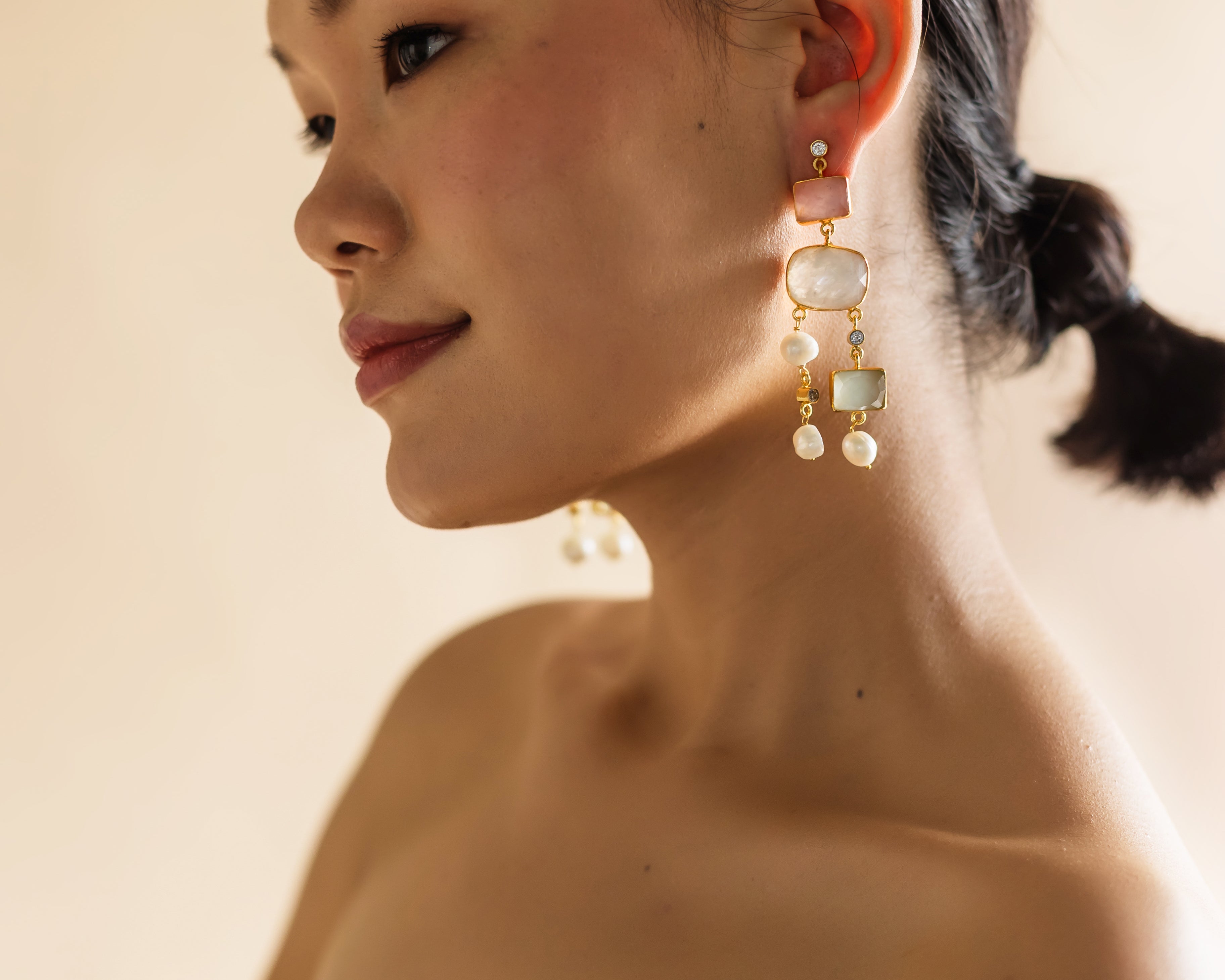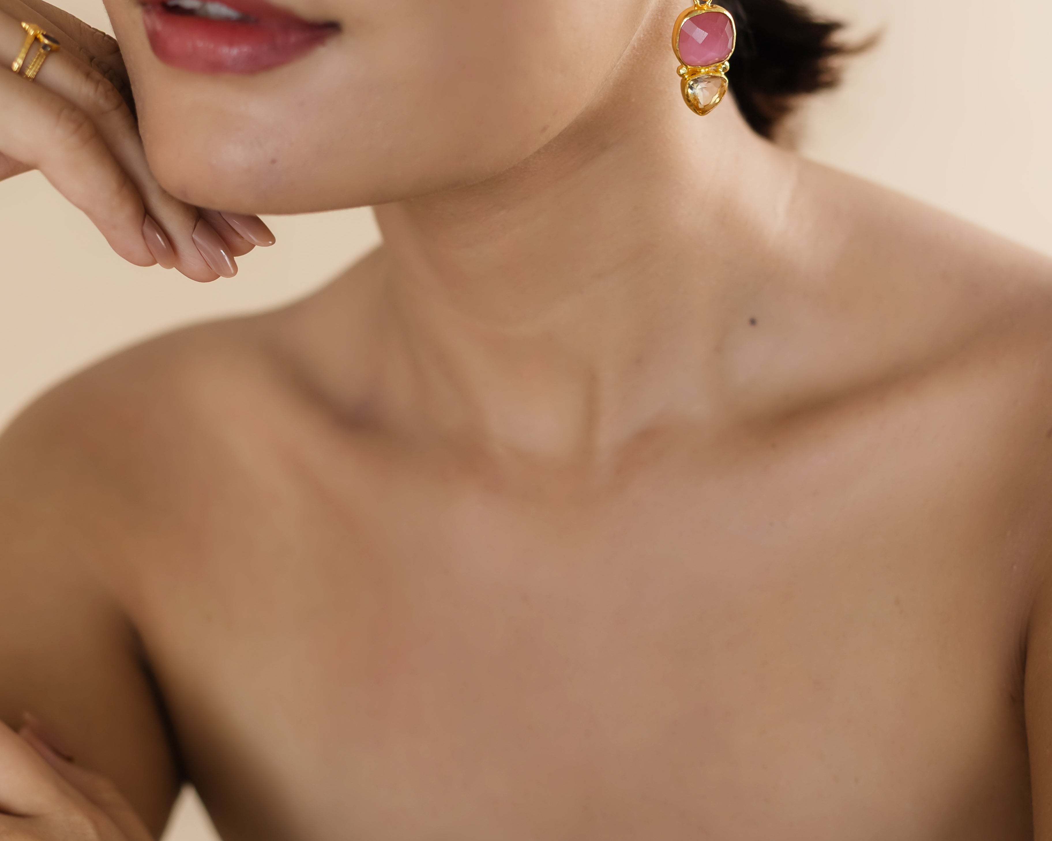 PALASA EARRINGS IN PINK ONYX AND TOPAZ