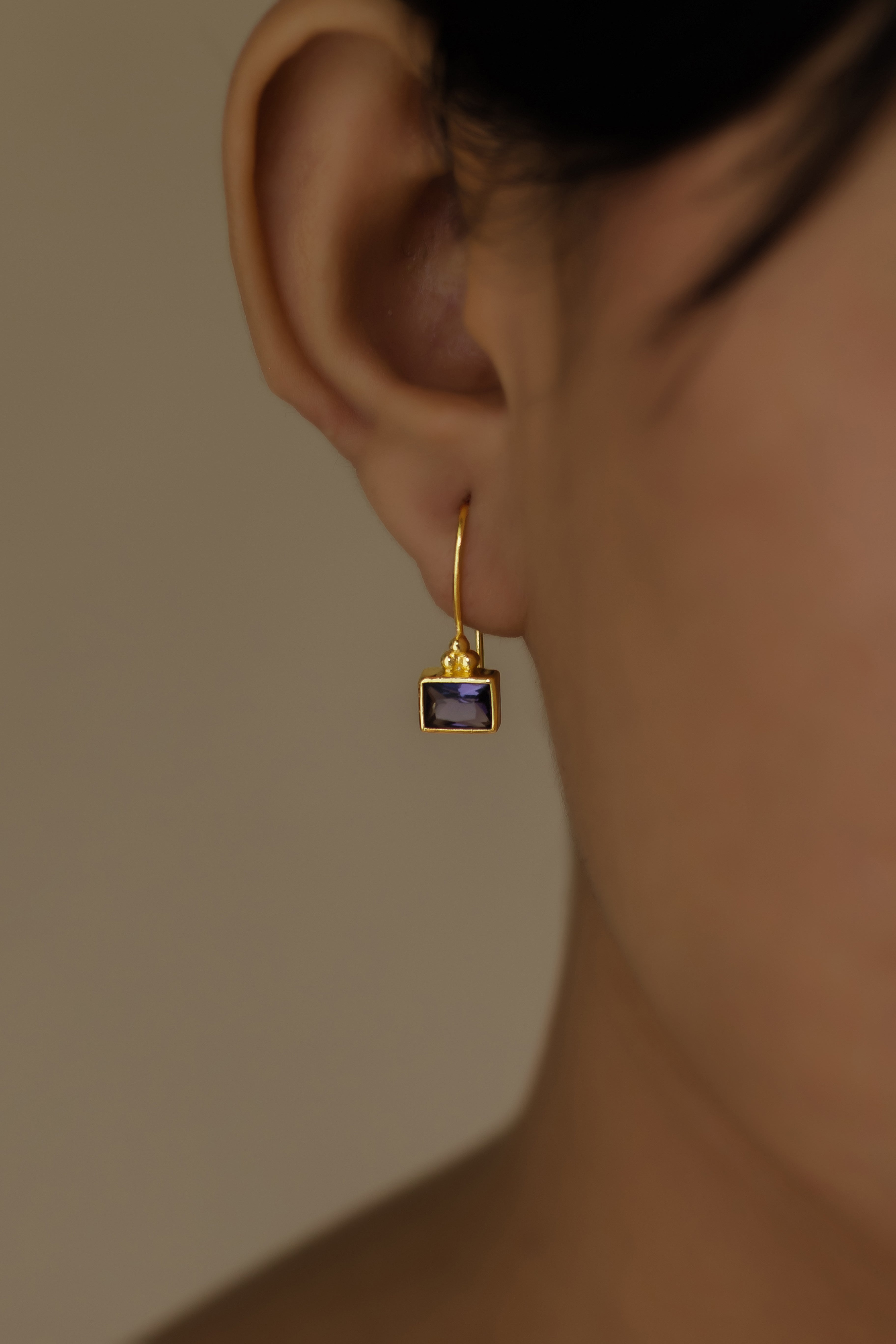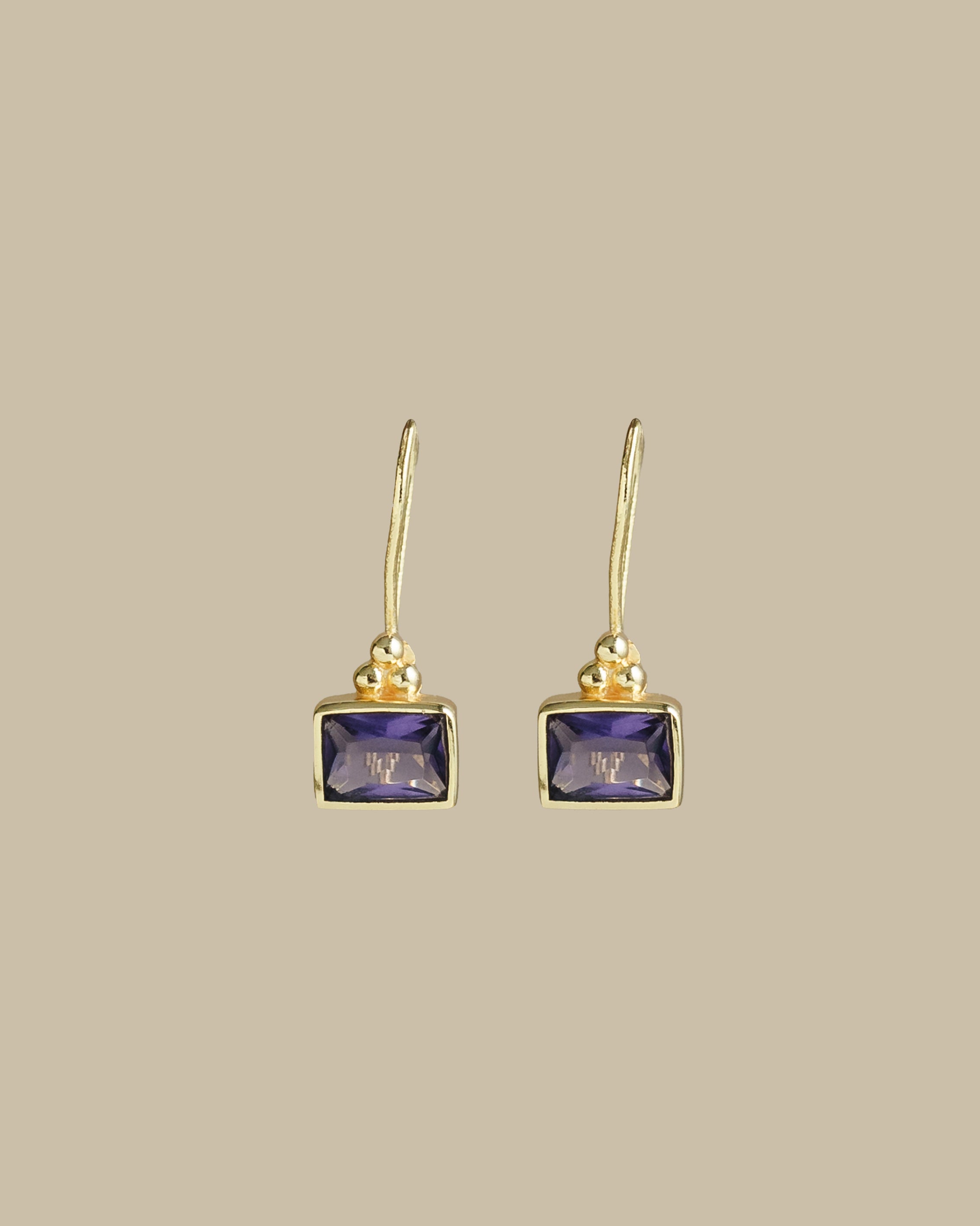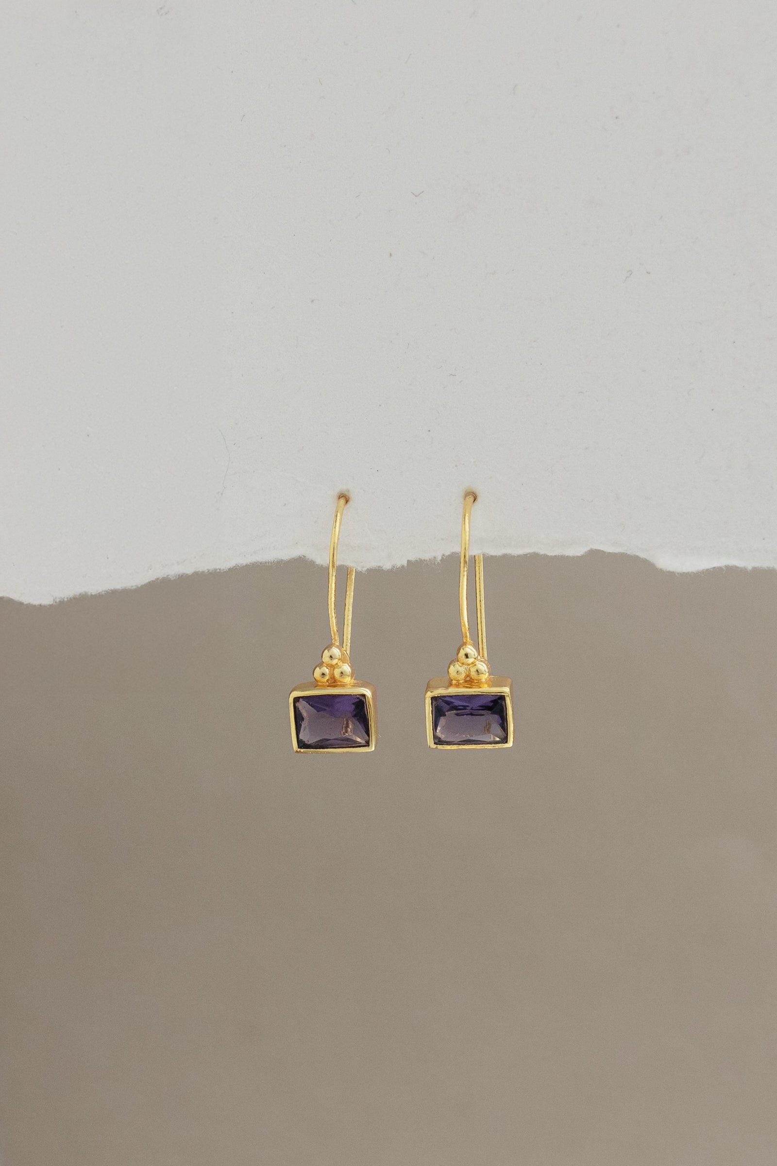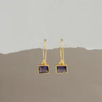 Faceted amethyst baguette drops topped with a delicate beaded detail – minimal with a twist.