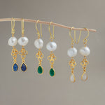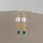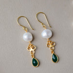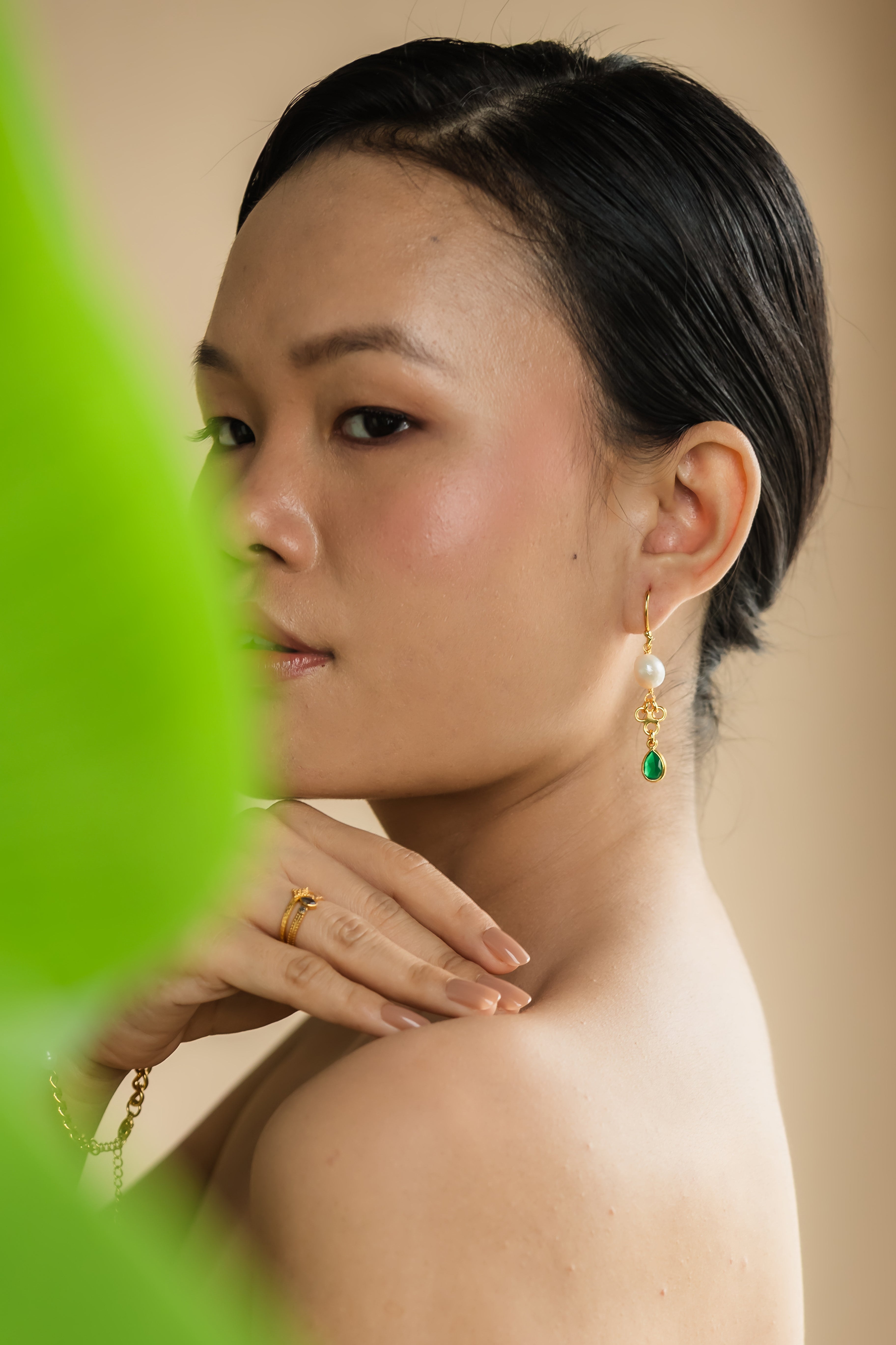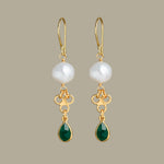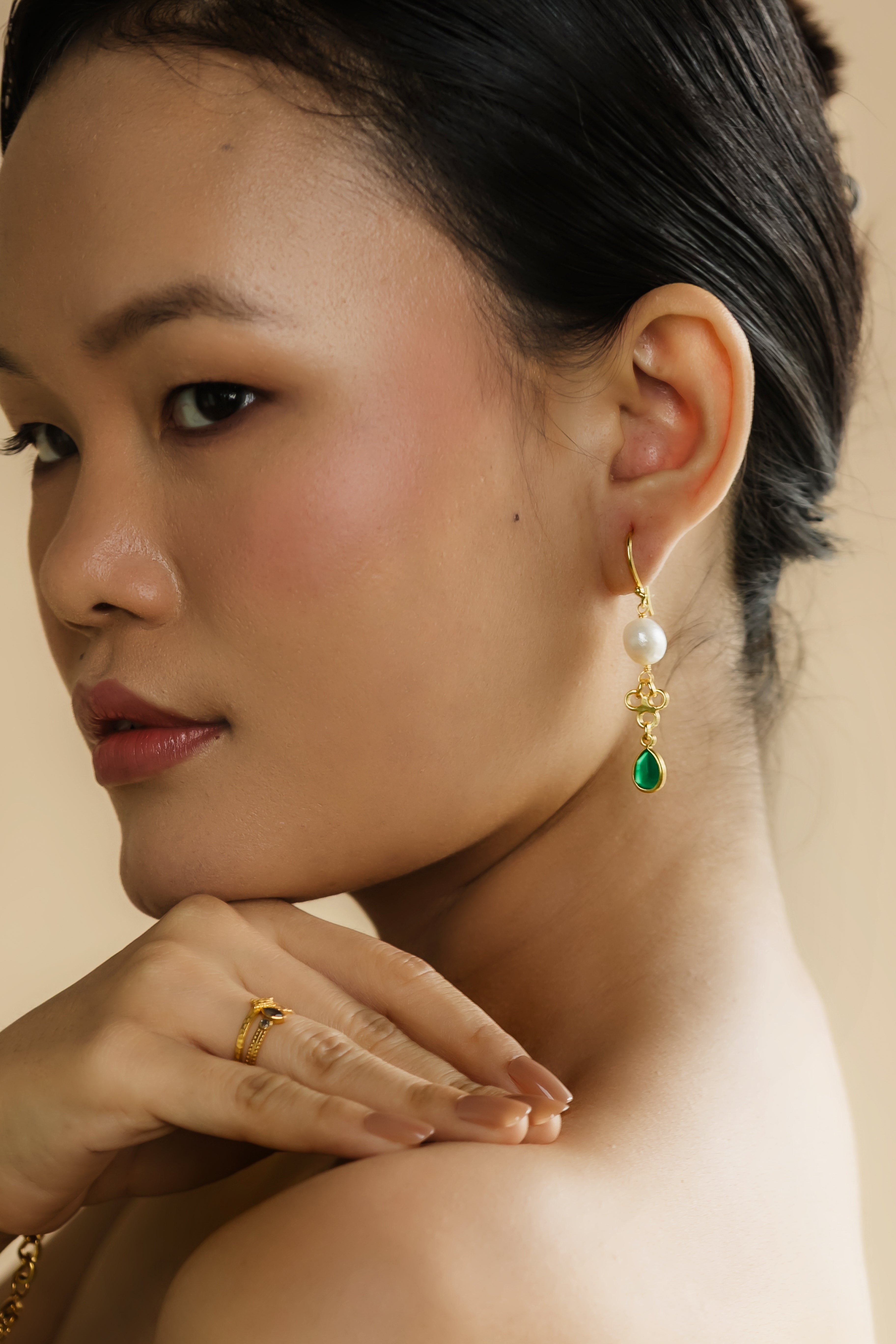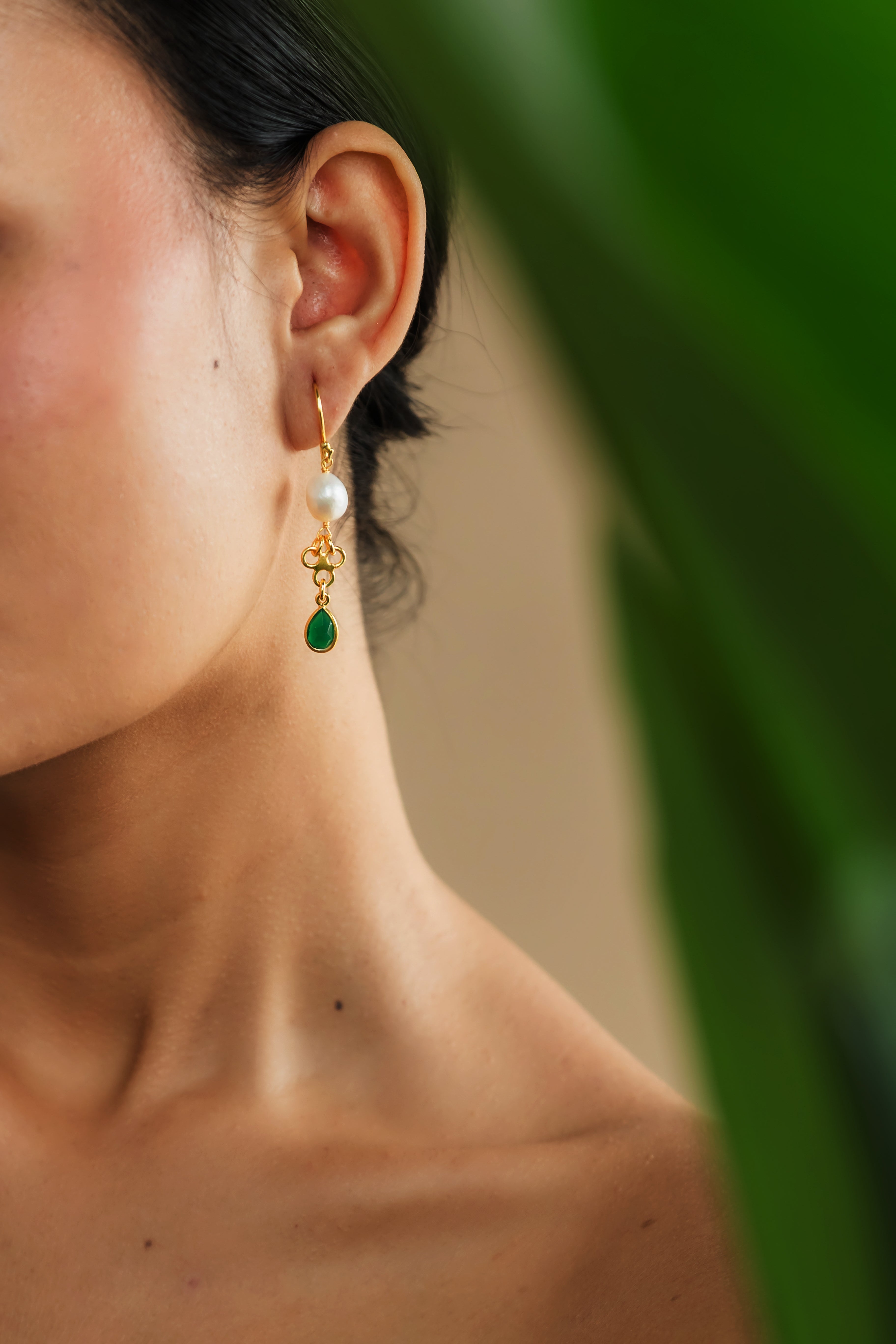 Faceted green onyx with vintage brass details and a natural freshwater pearl – bold yet elegant.