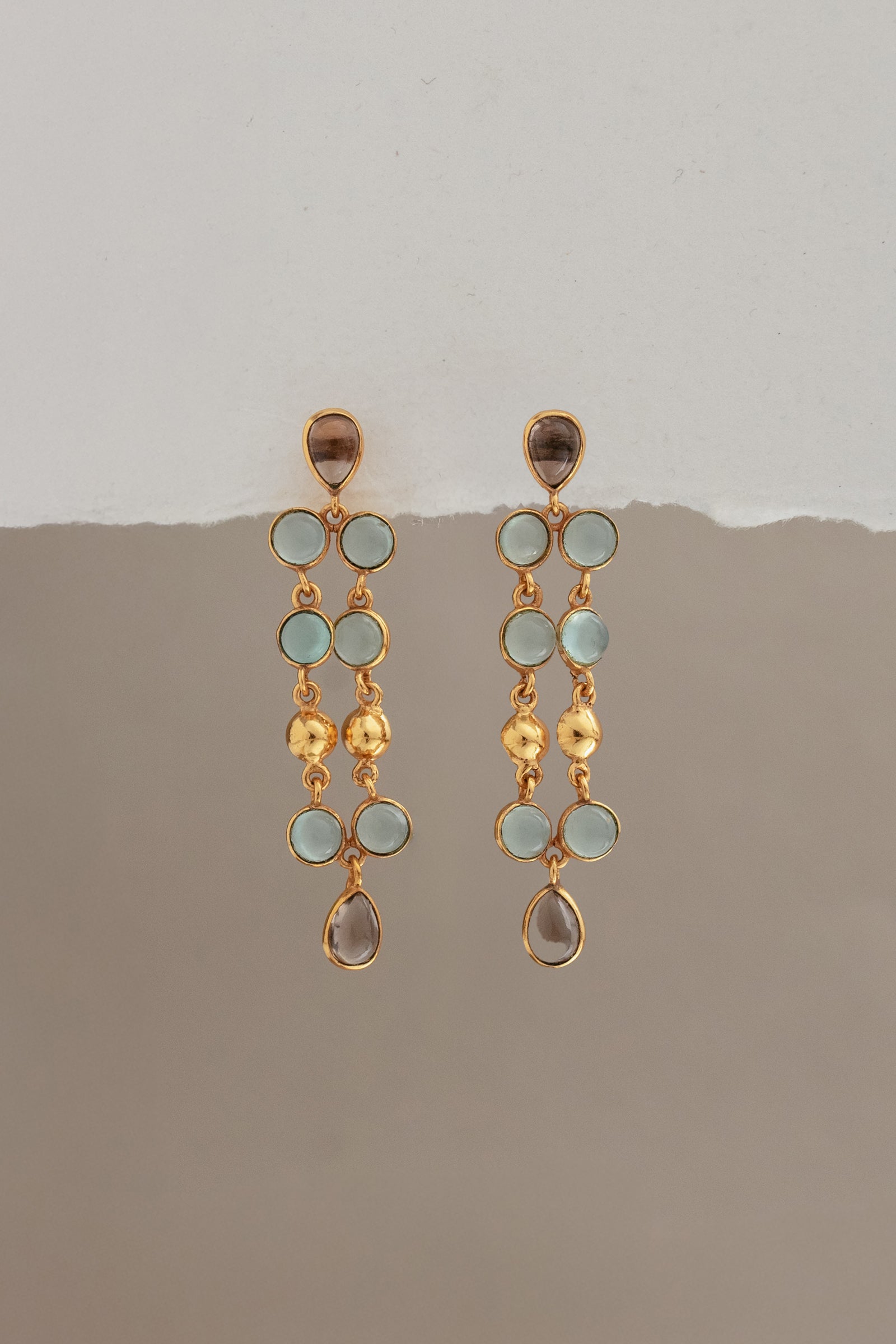 KAI COLUMN EARRINGS IN SMOKY TOPAZ AND AQUA