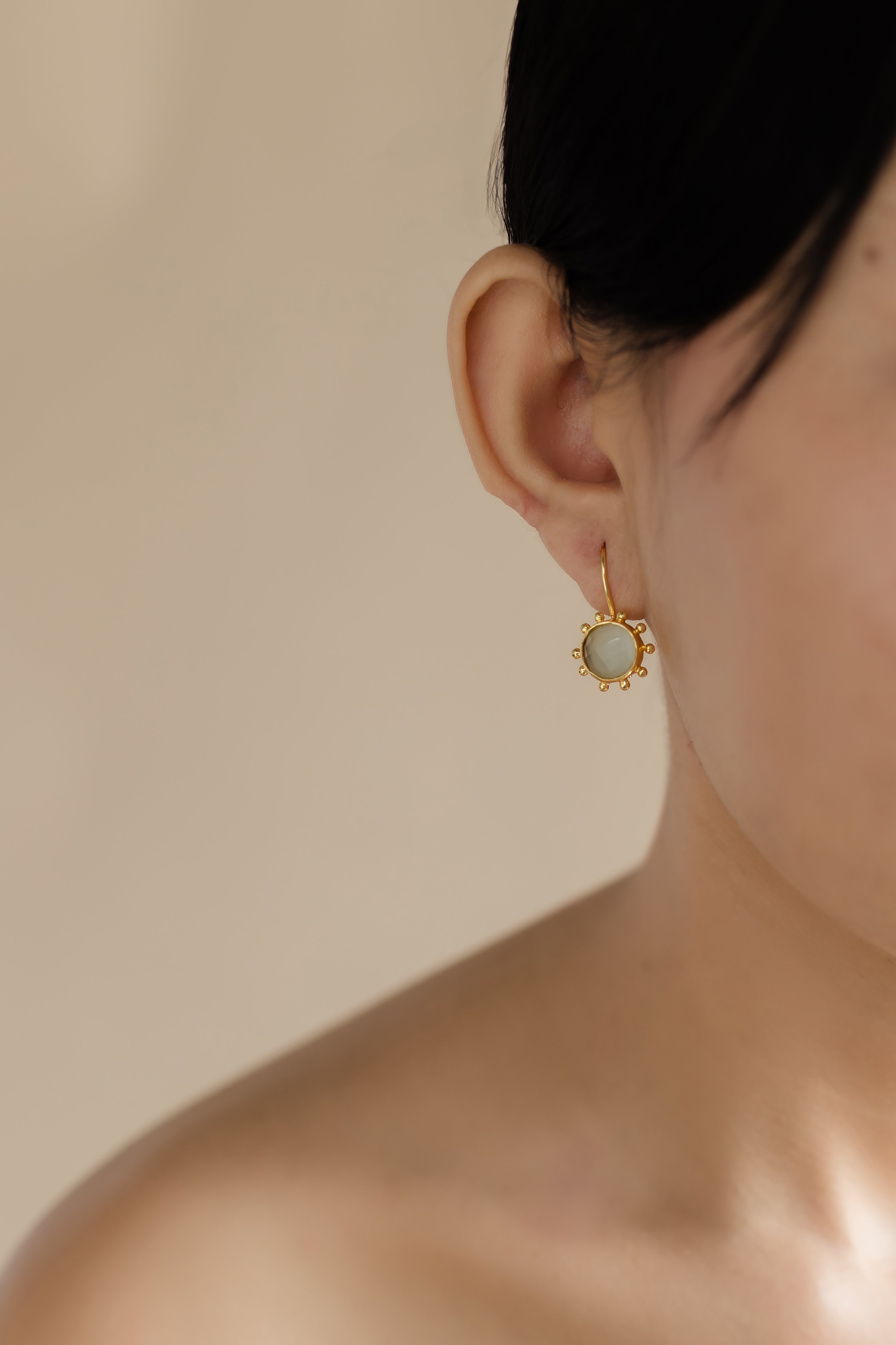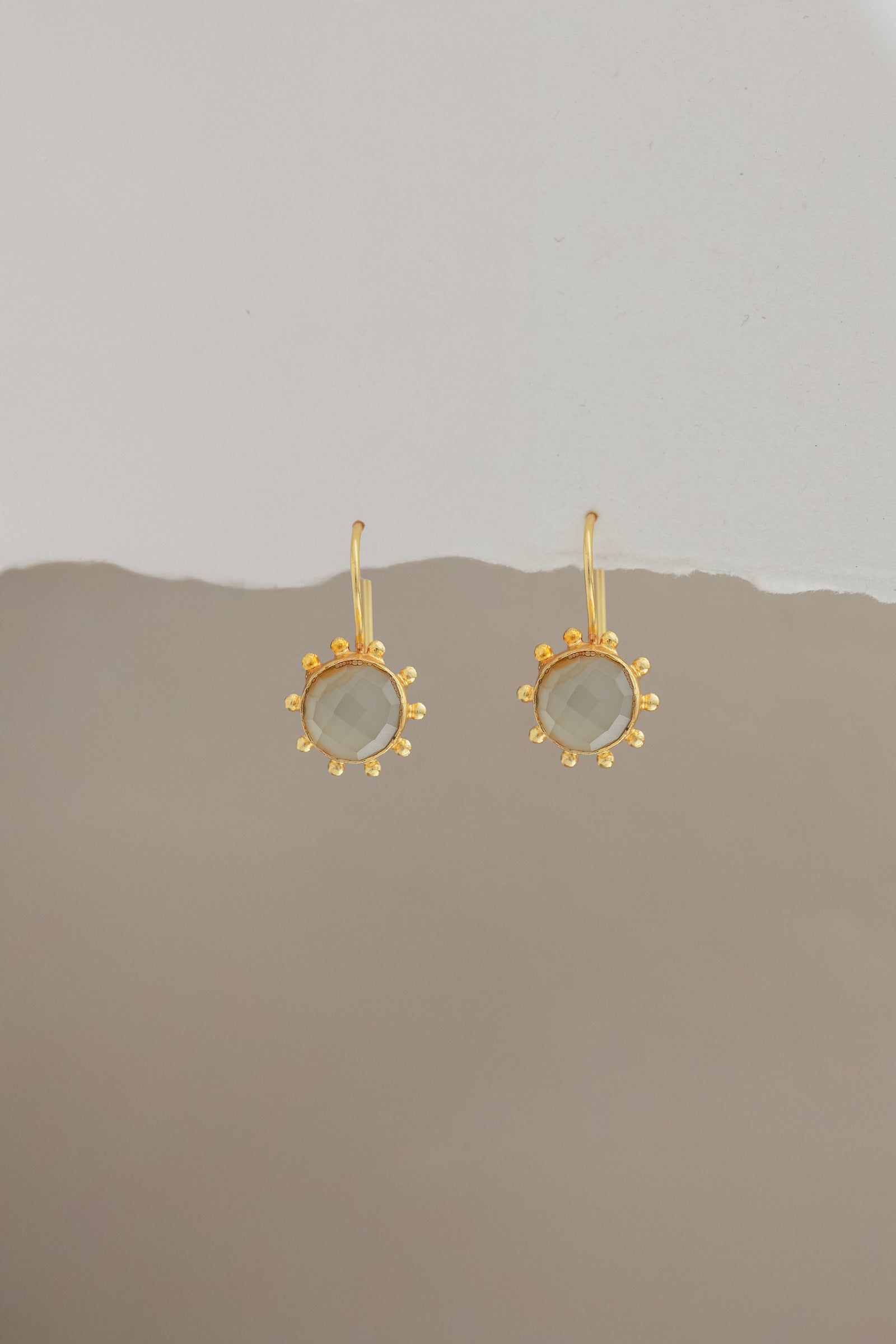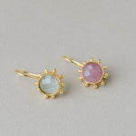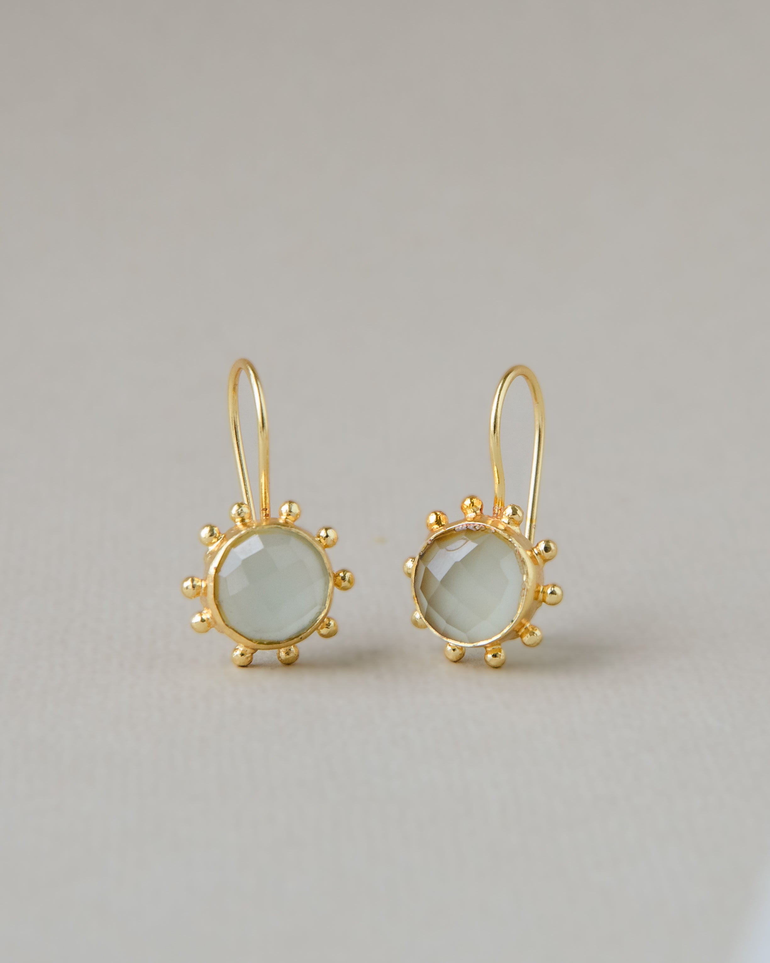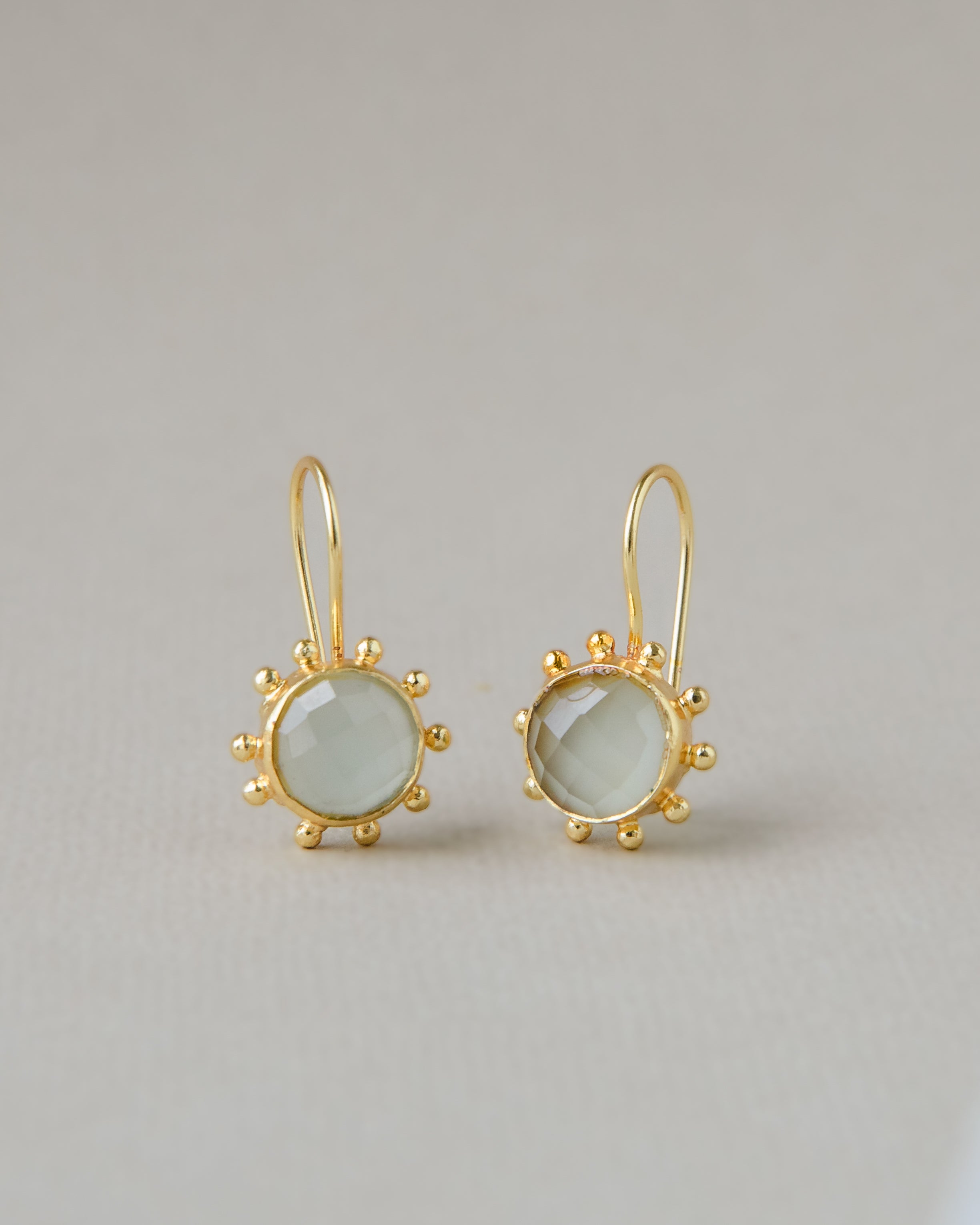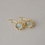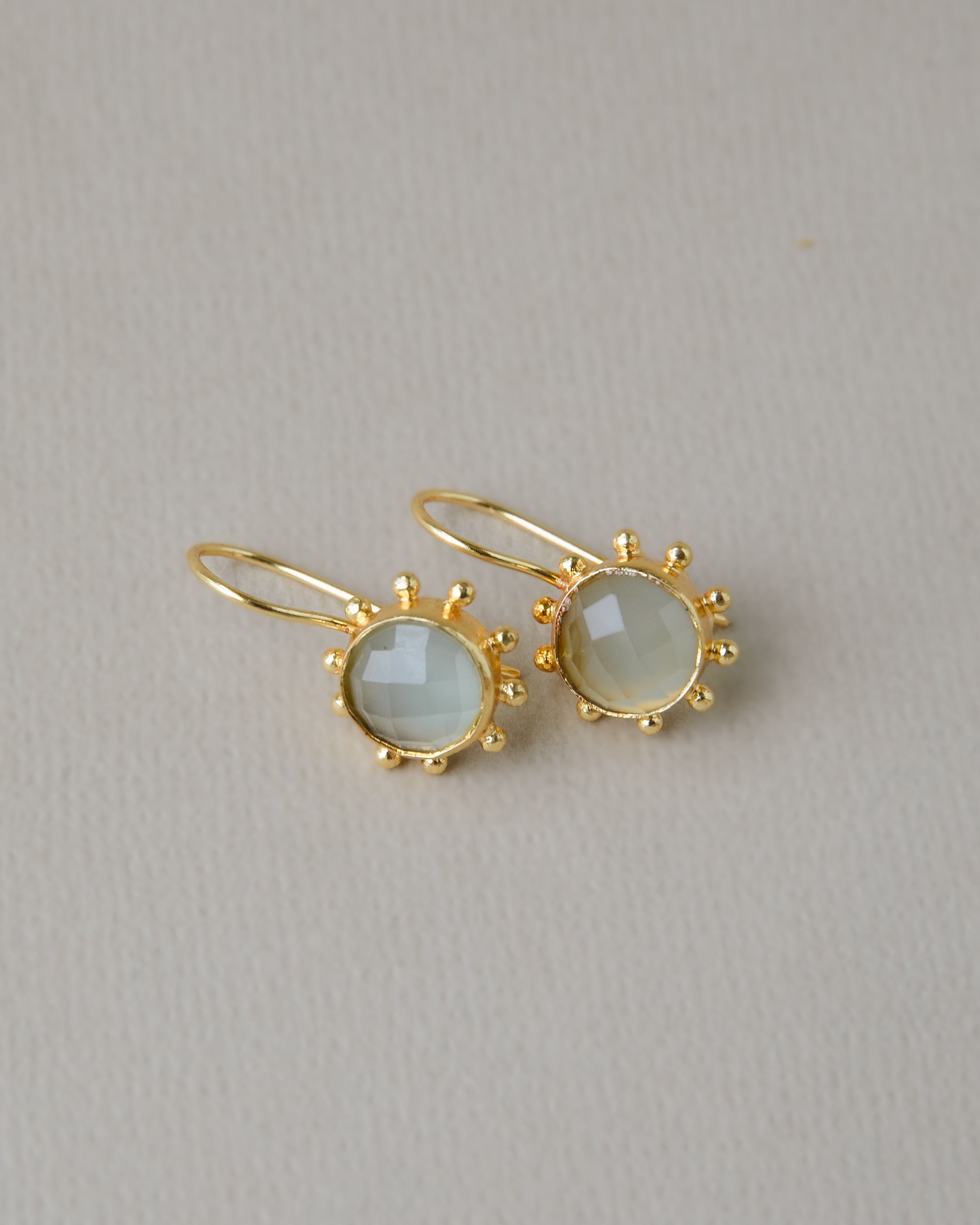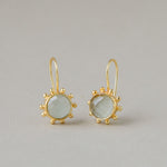 Minimal and refined, these drops feature aqua stones set in a beaded casing.