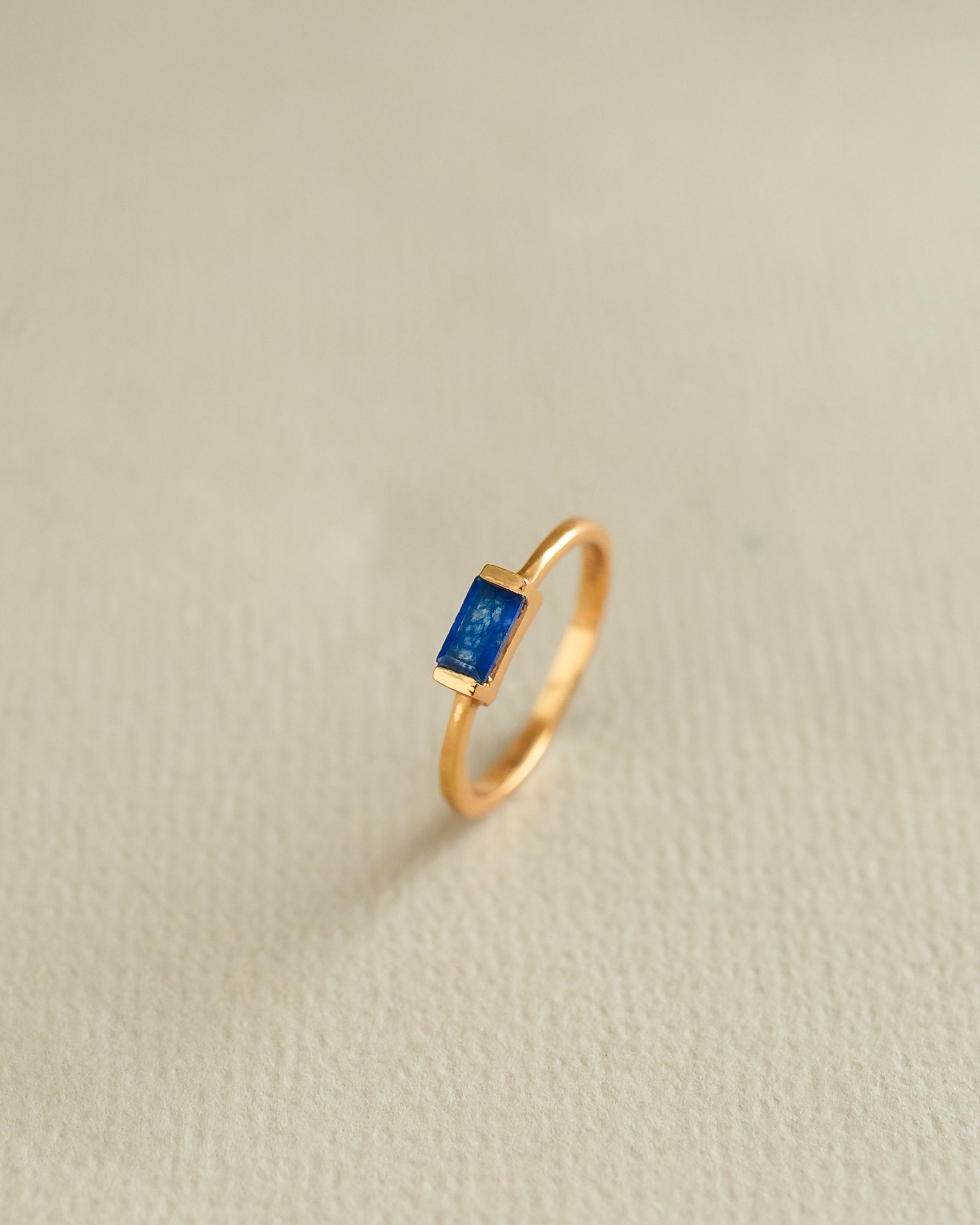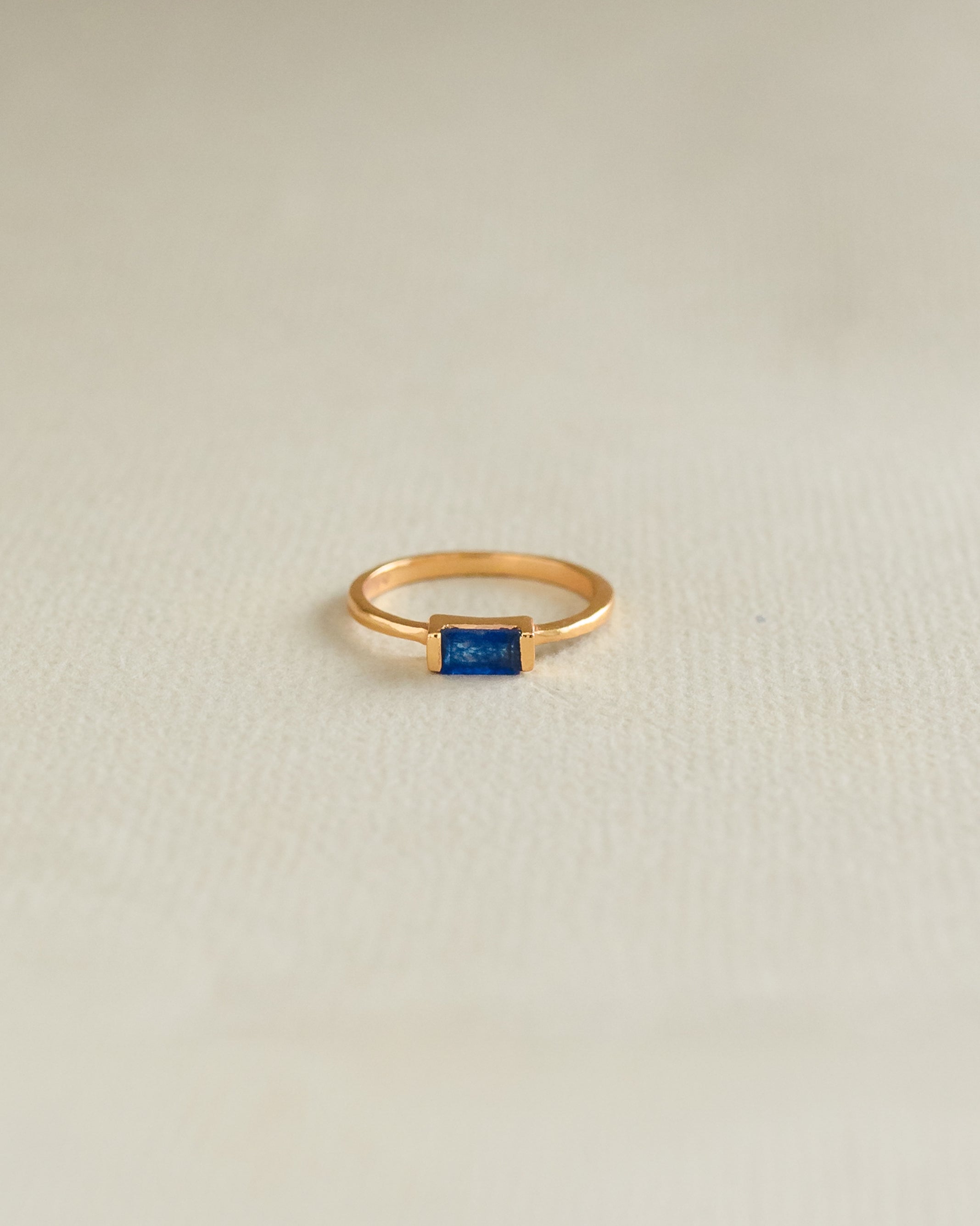 A simple, elegant baguette ring in deep navy lapis. Perfect worn alone or stacked.