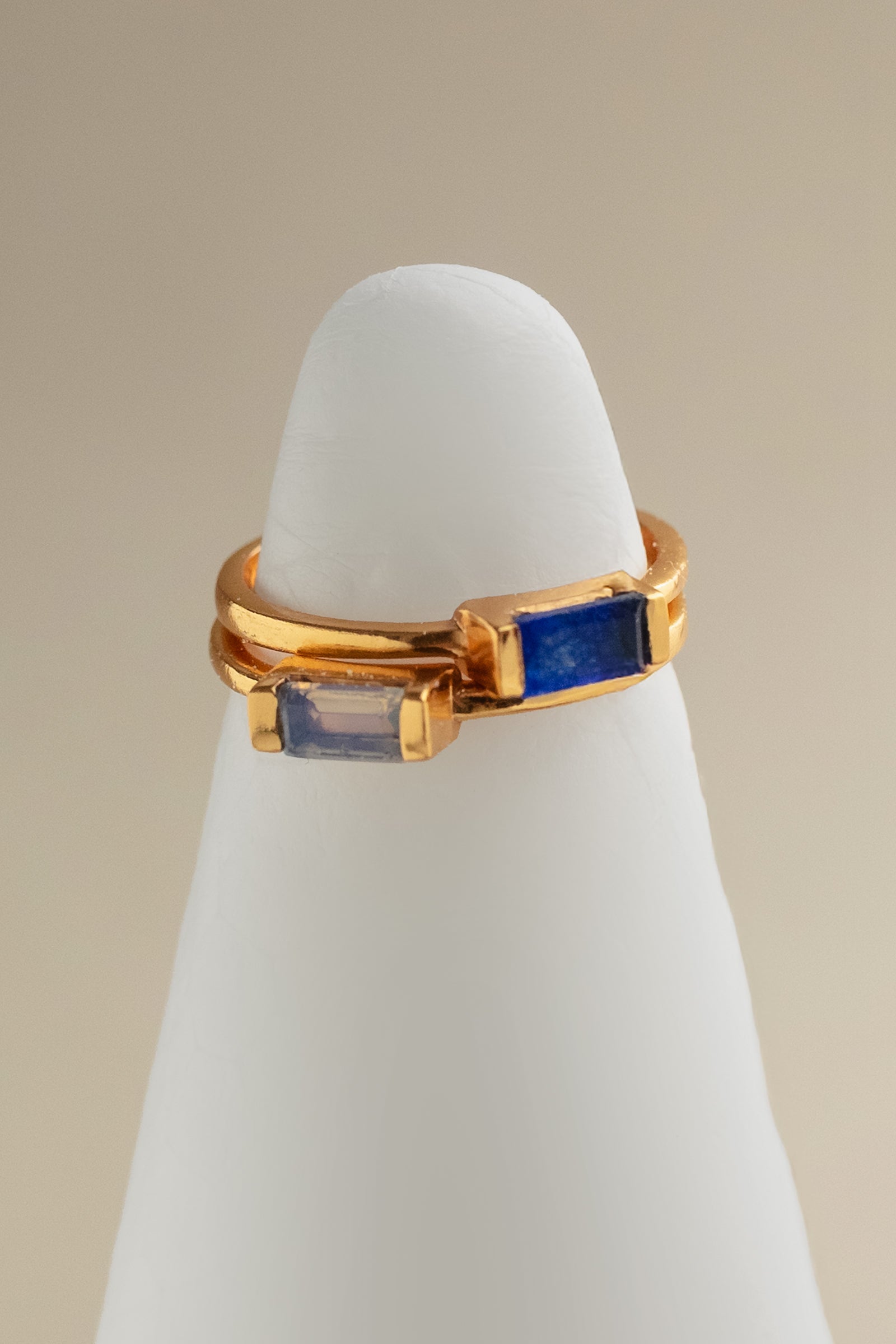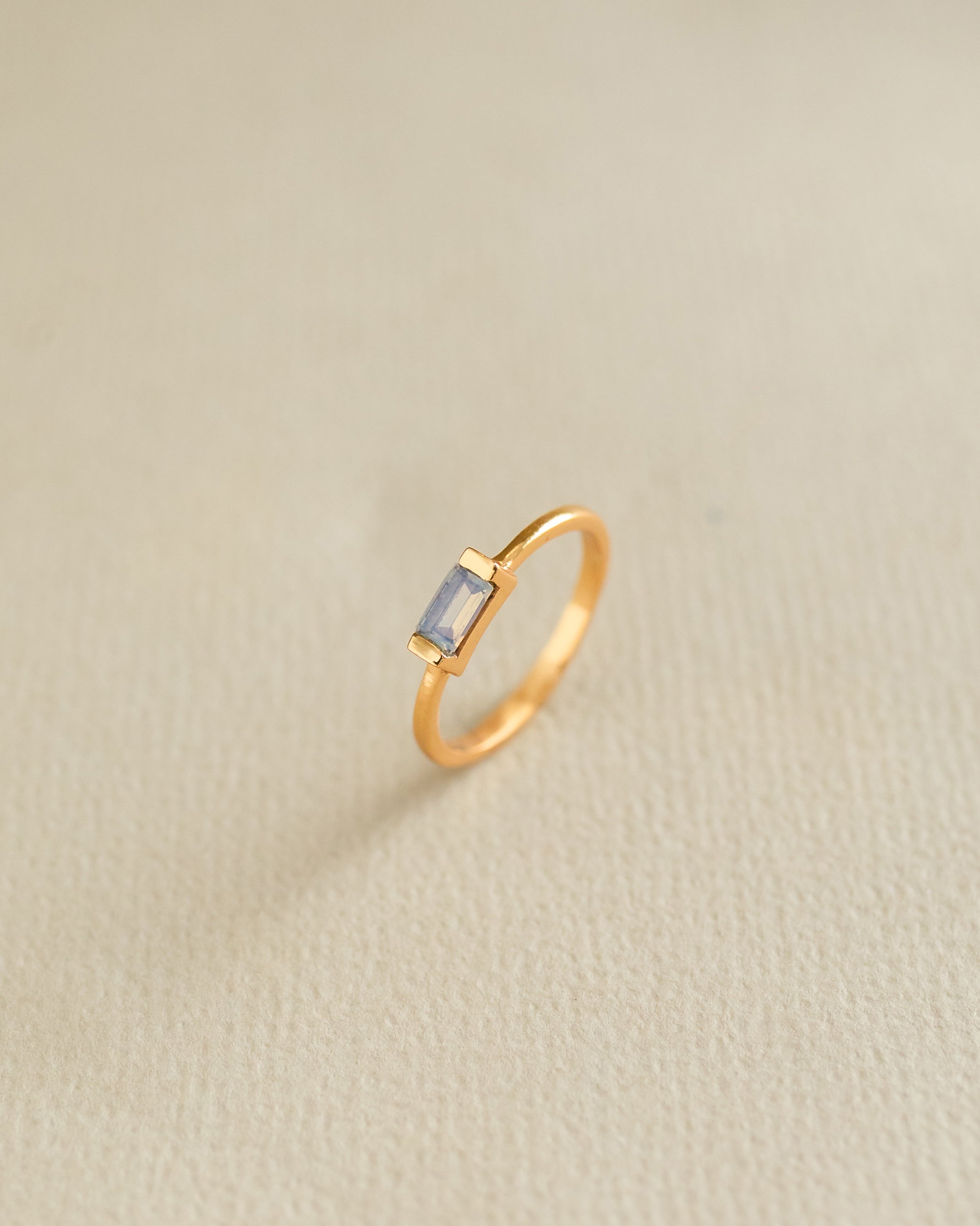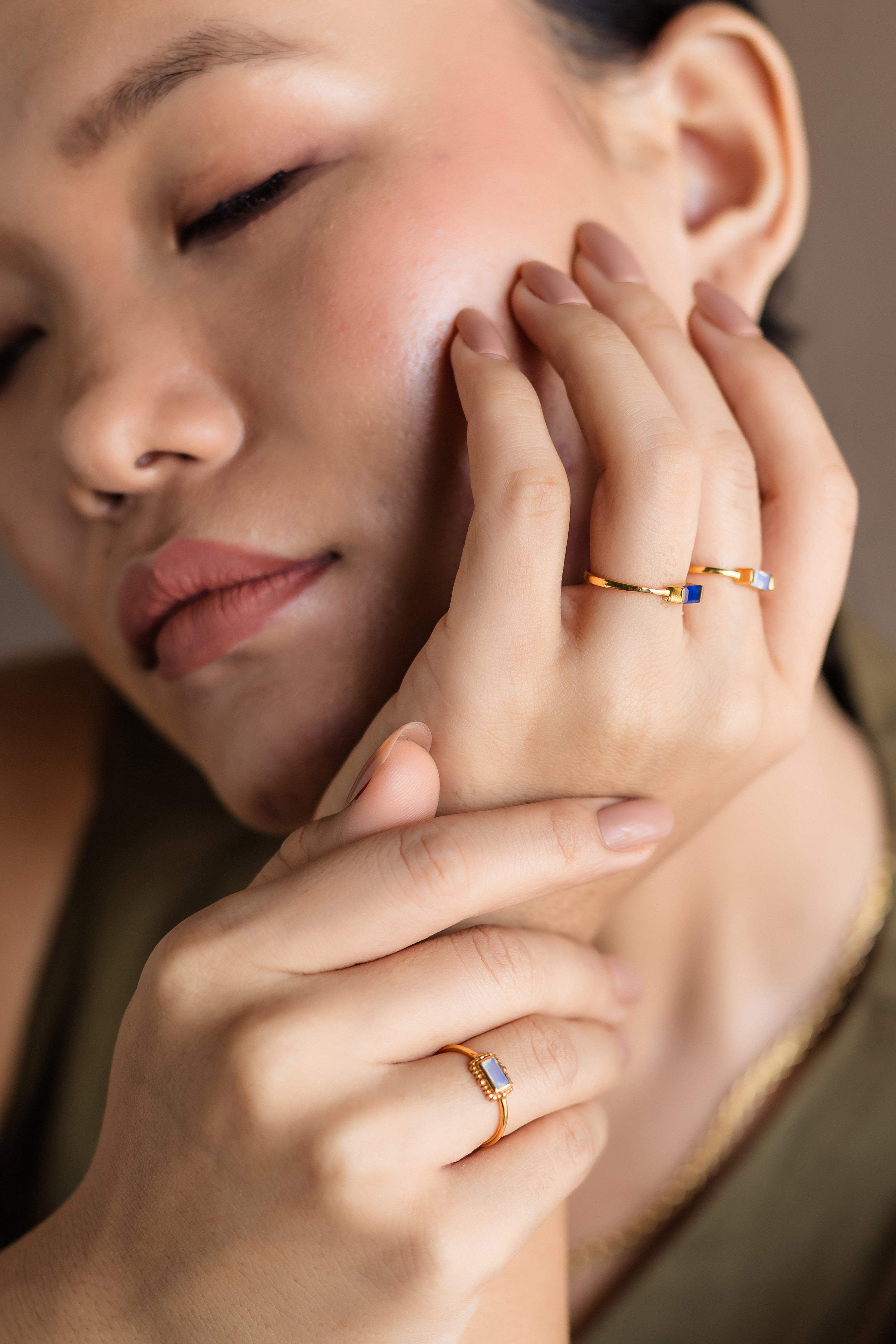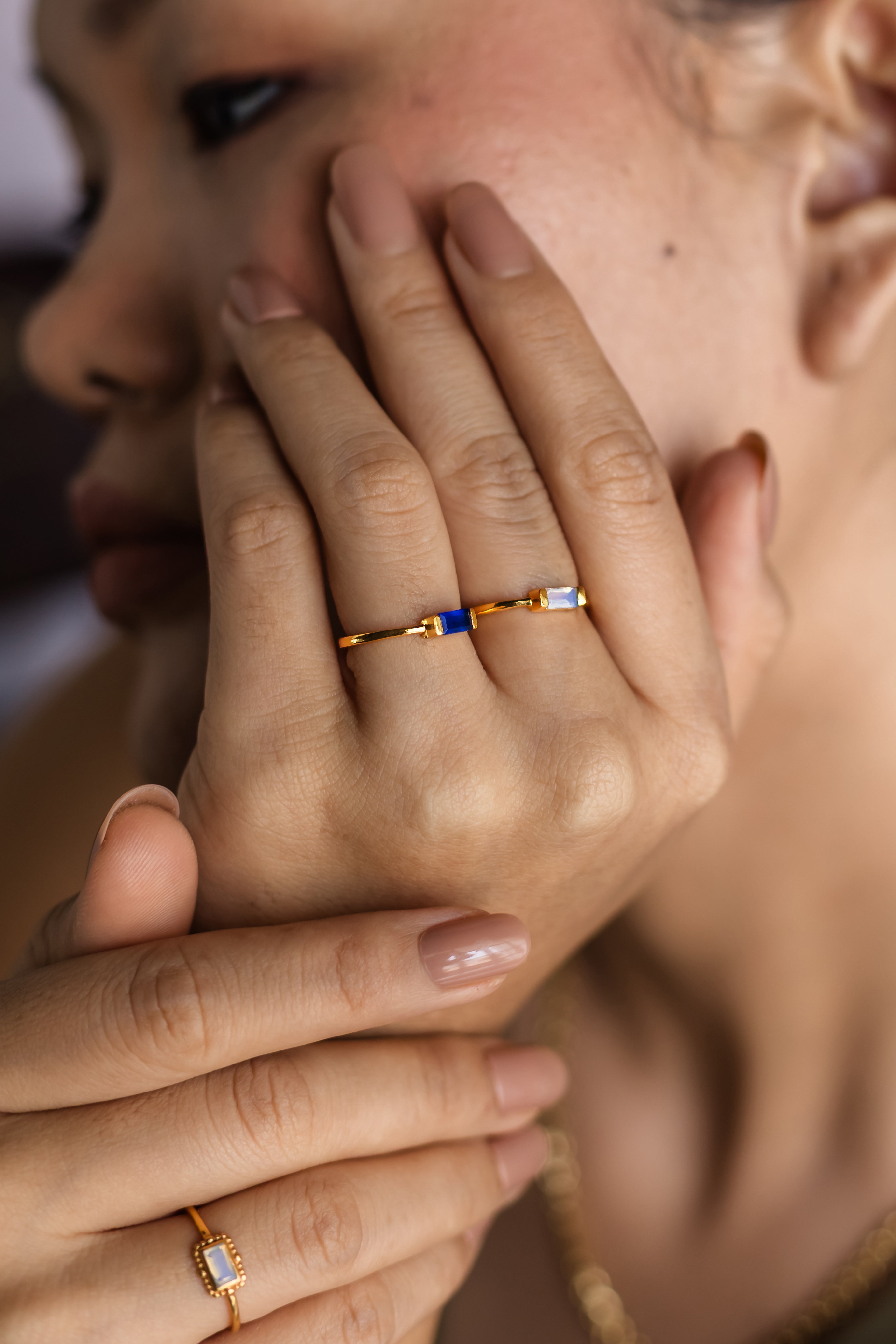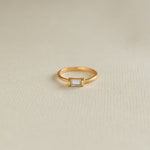 A sleek, minimal baguette ring in shimmering opalite – a dream for stacking.