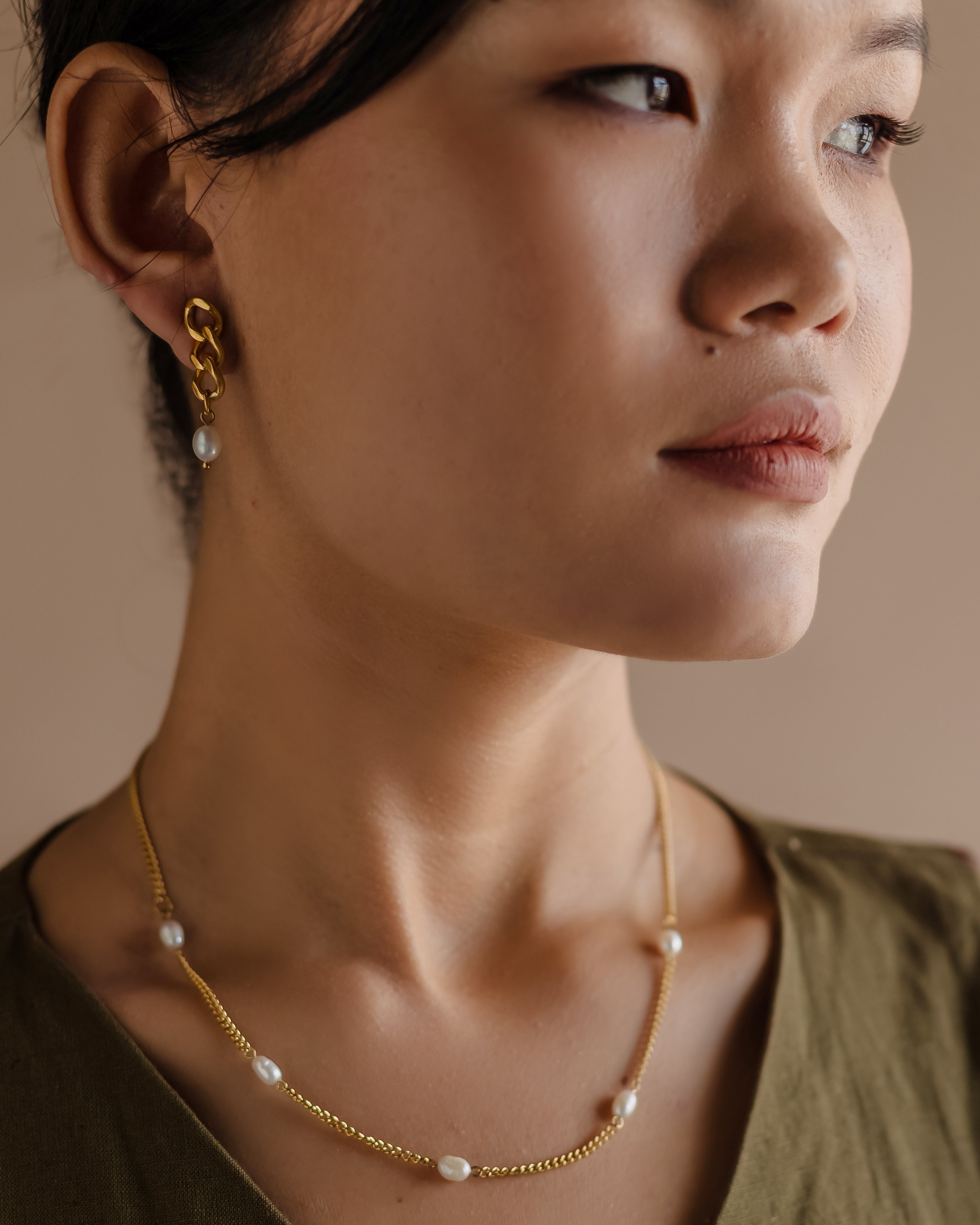 Tiny curb links meet pearls — a mini moment for everyday glam.