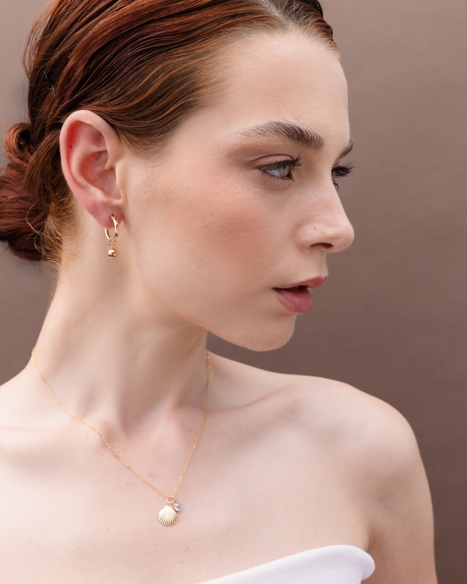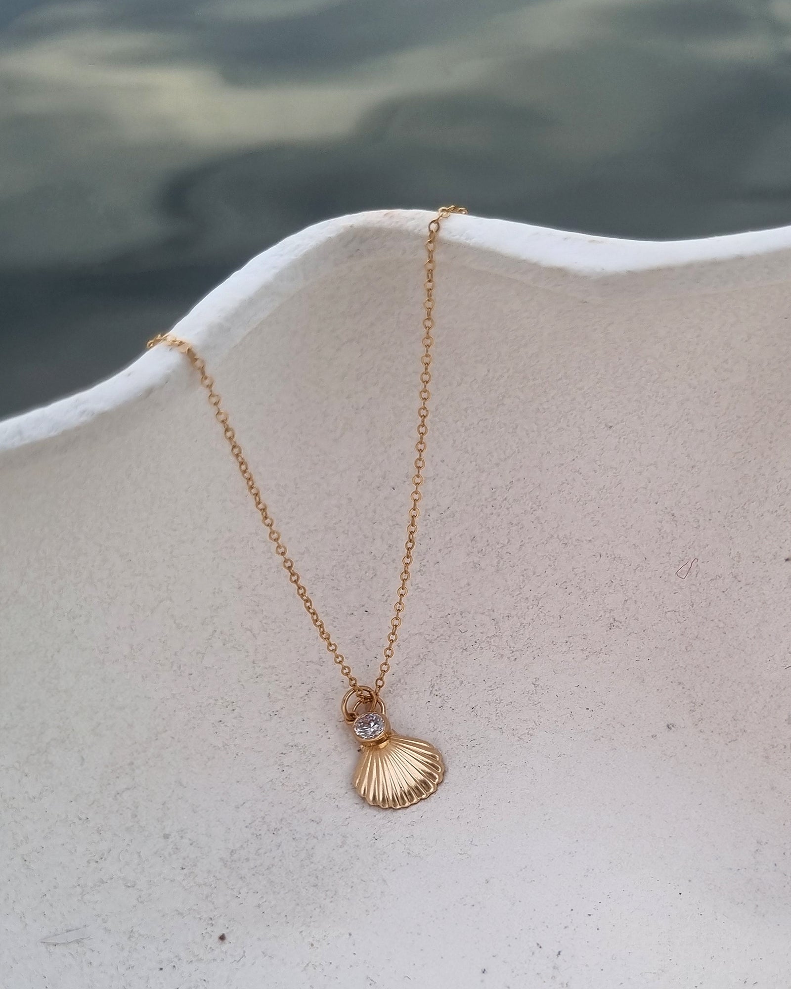 You can almost hear the ocean with our Bondi necklace. Delicate seashell and zirconia charms come together with our classic flat cable chain.