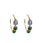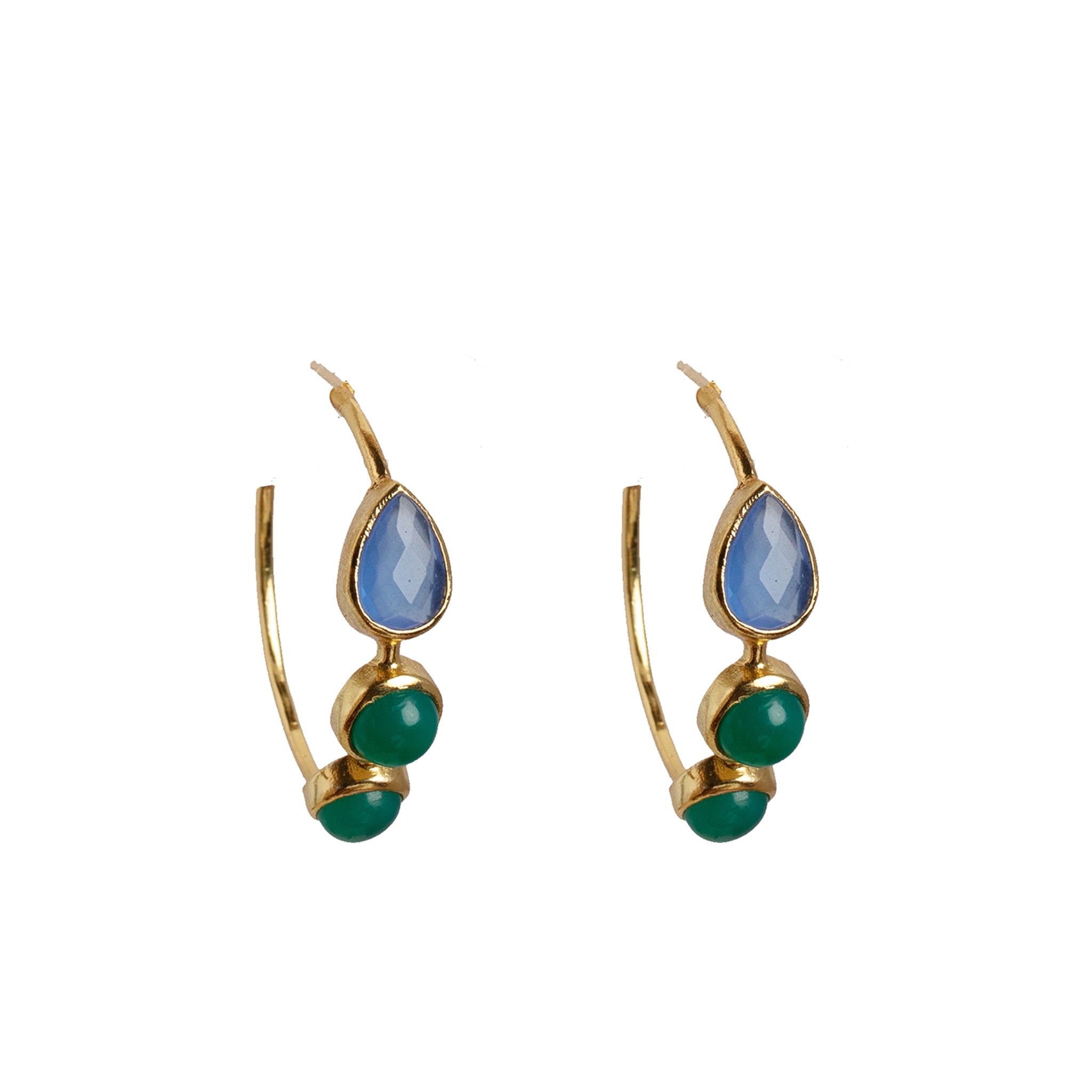 Introducing our Triple Stone Hoops in Chalcedony and Green Onyx a stunning and vibrant pair of earrings that elegantly showcases the soothing beauty of chalcedony and the rich hues of green onyx.