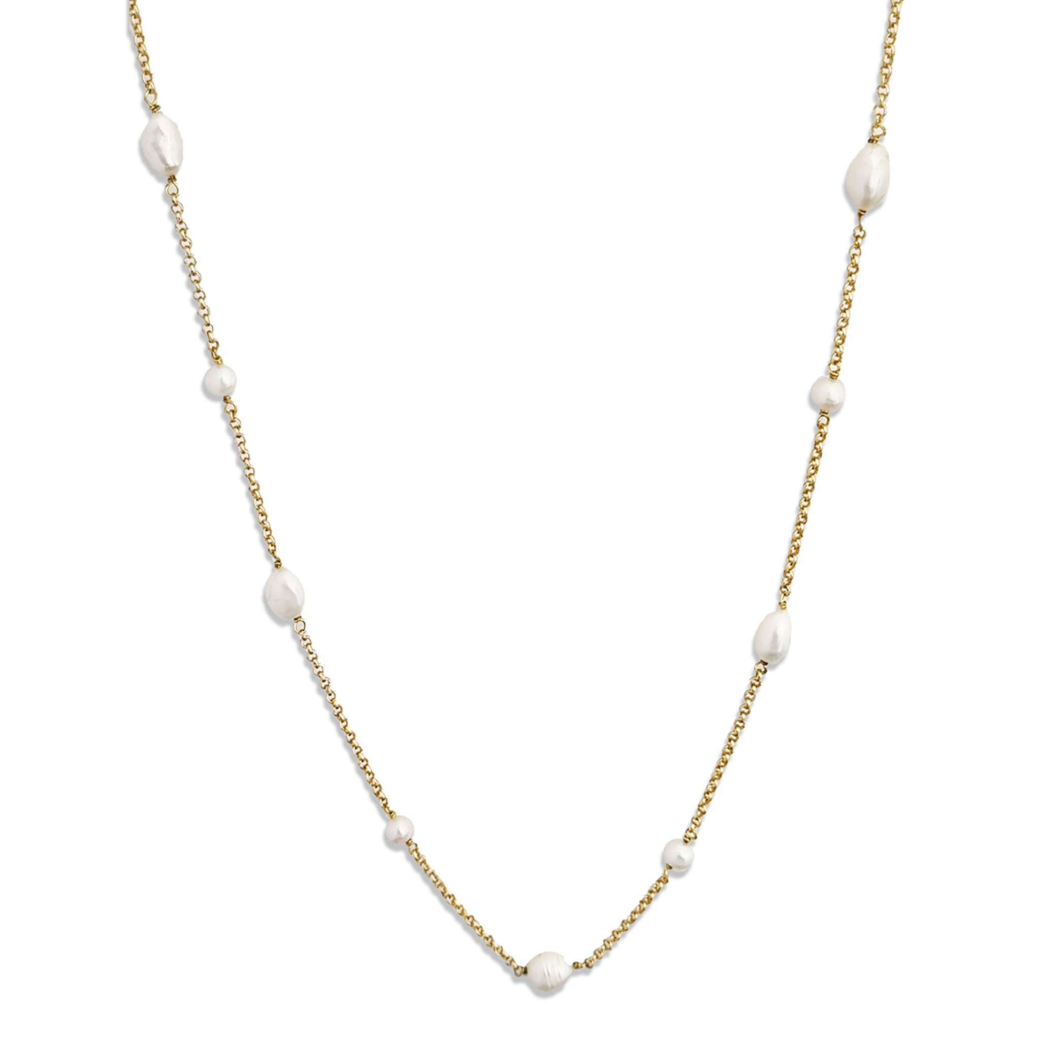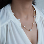 The Galaxy pearl necklace boasts an array of exquisite freshwater pearls, all delicately handcrafted with brass.