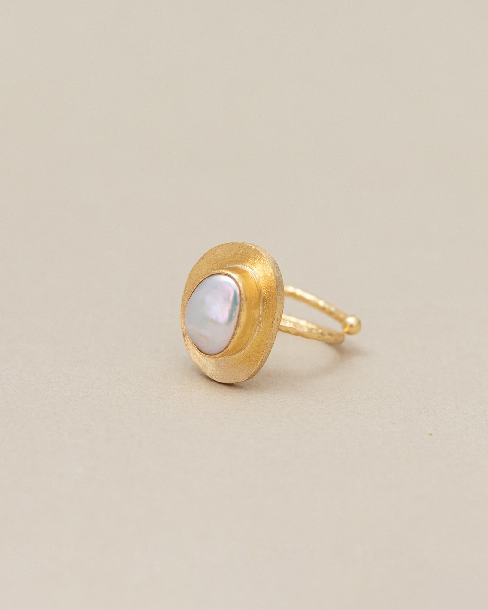 Elevate your look with our Mother of Pearl Textured Ring, a perfect fusion of vintage charm and refined style.
