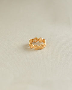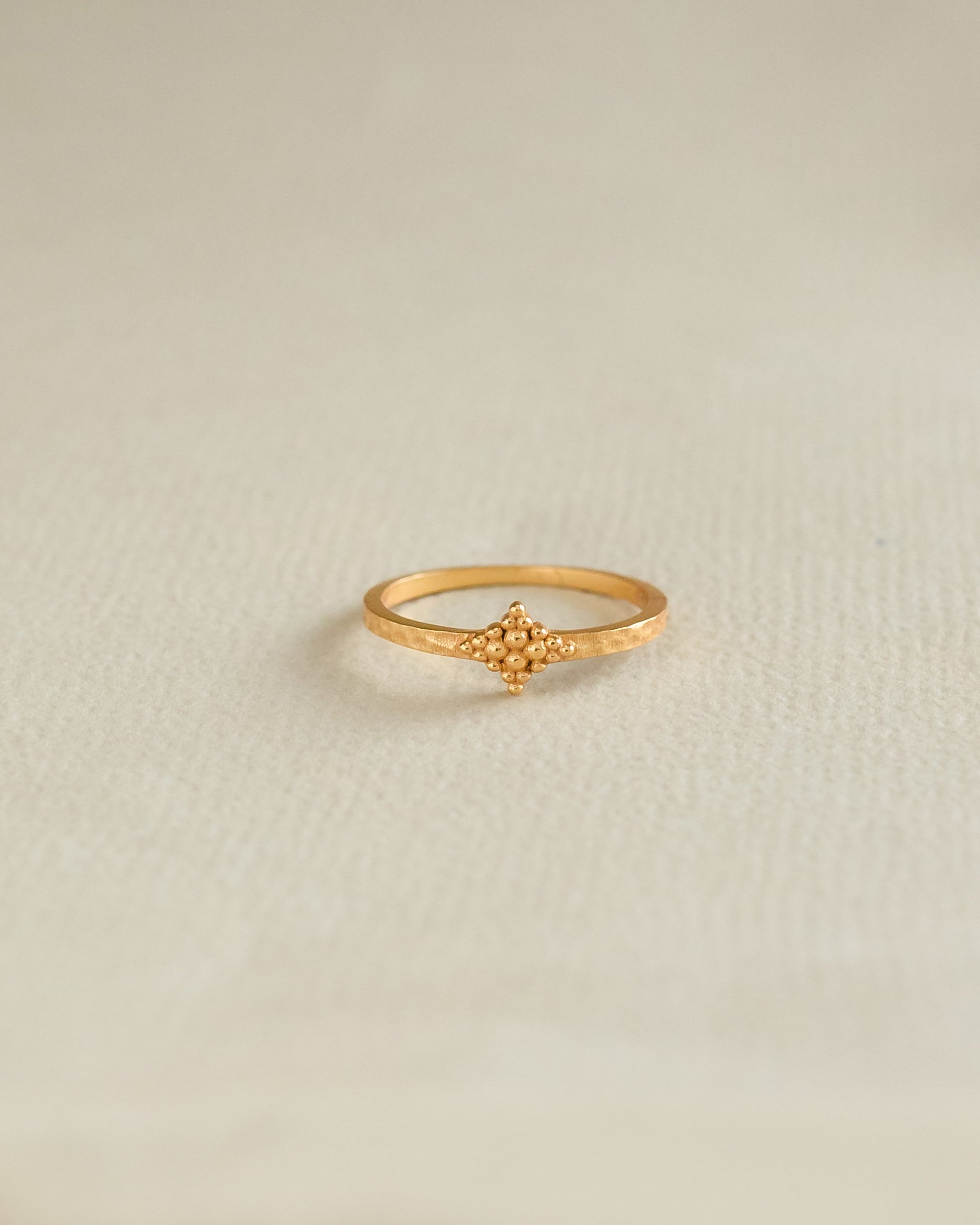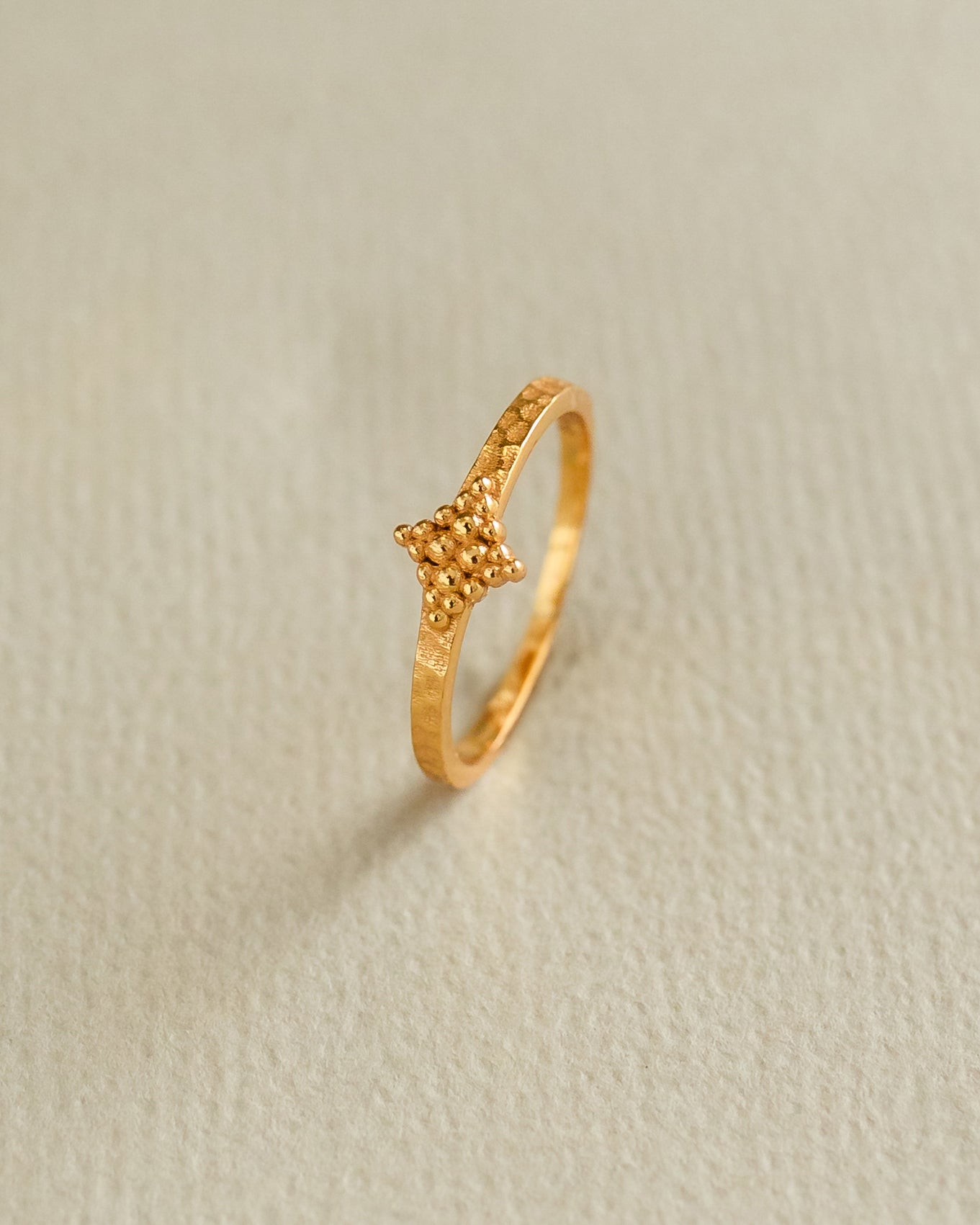 A beautifully handcrafted, beaten brass ring with a beaded motif – minimal, eye-catching, with an interplay of texture.