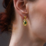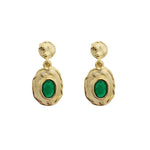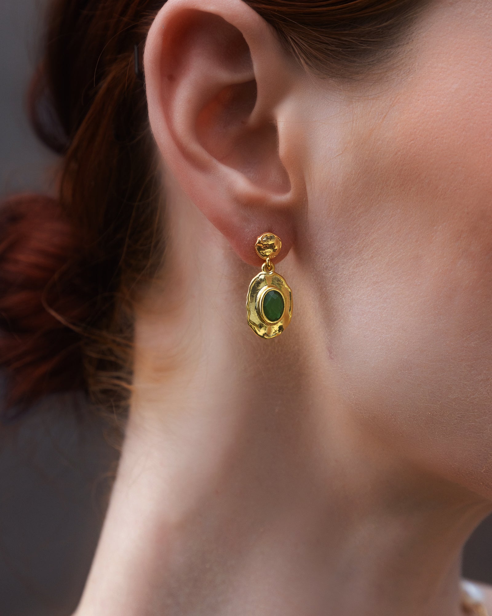 This earring features a beautiful combination of brass and green onyx, creating a luxurious and elegant accessory.