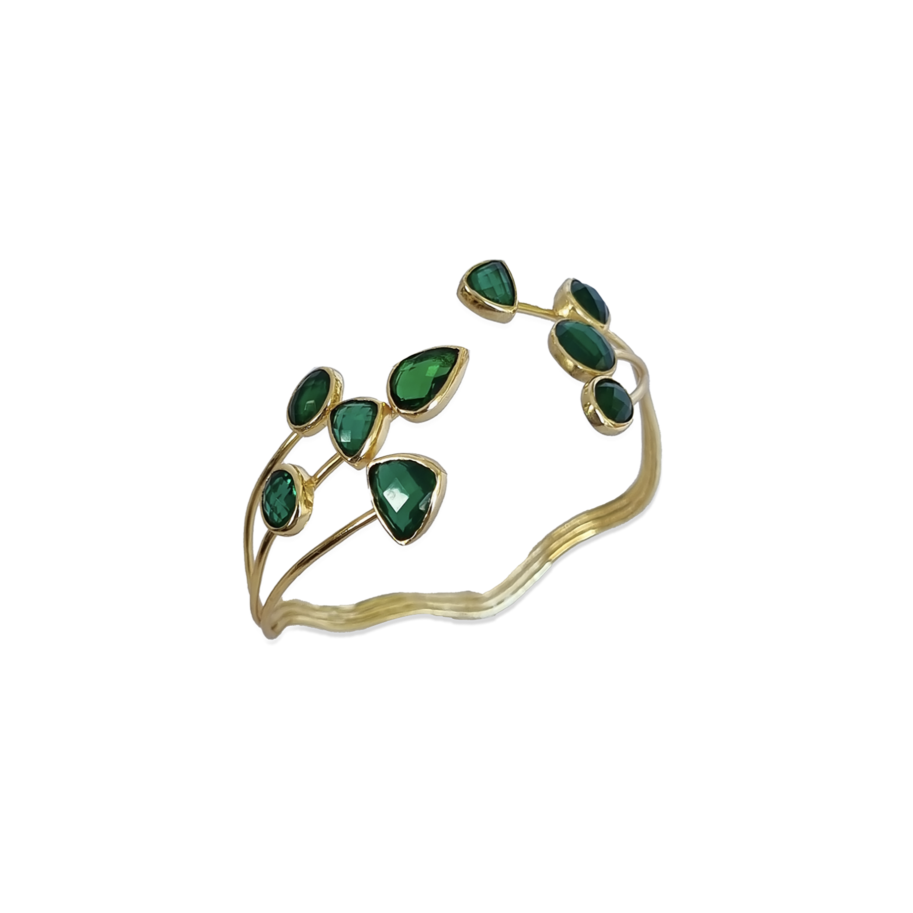 Our Orchard Leaves Bracelet in Emerald onyx and Brass is nature-inspired and an elegant piece that combines the lush green hues of emeralds with the warmth of brass.