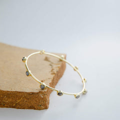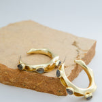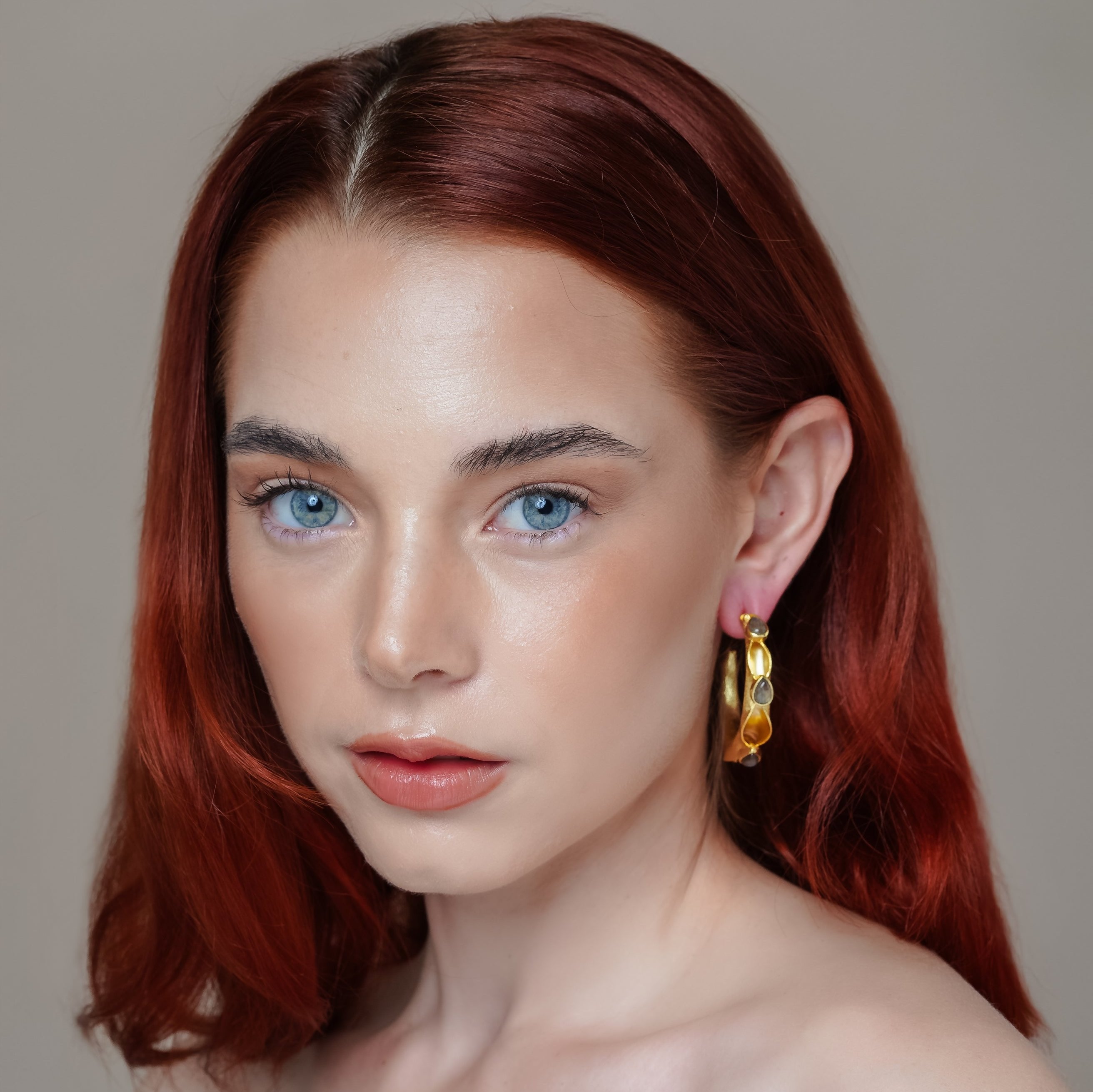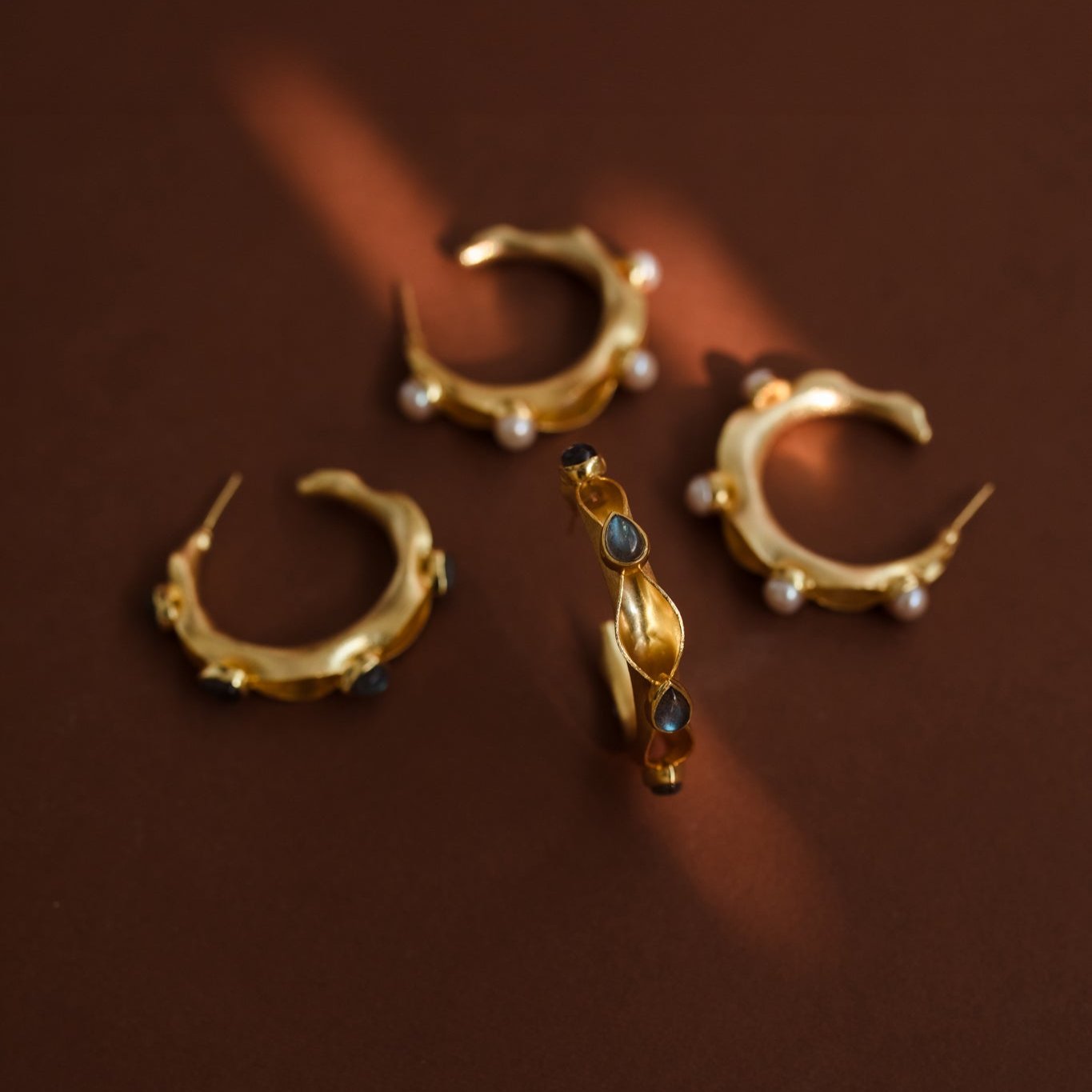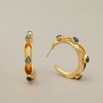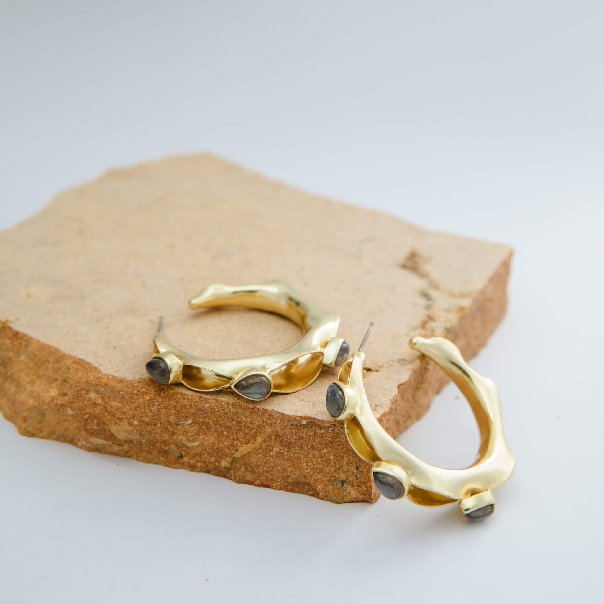 Our bloom earring in labradorites is an elevated hoop – handcrafted to resemble the delicate petals of a blooming flower.