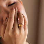 HORUS RING IN AQUA AND SMOKY TOPAZ
