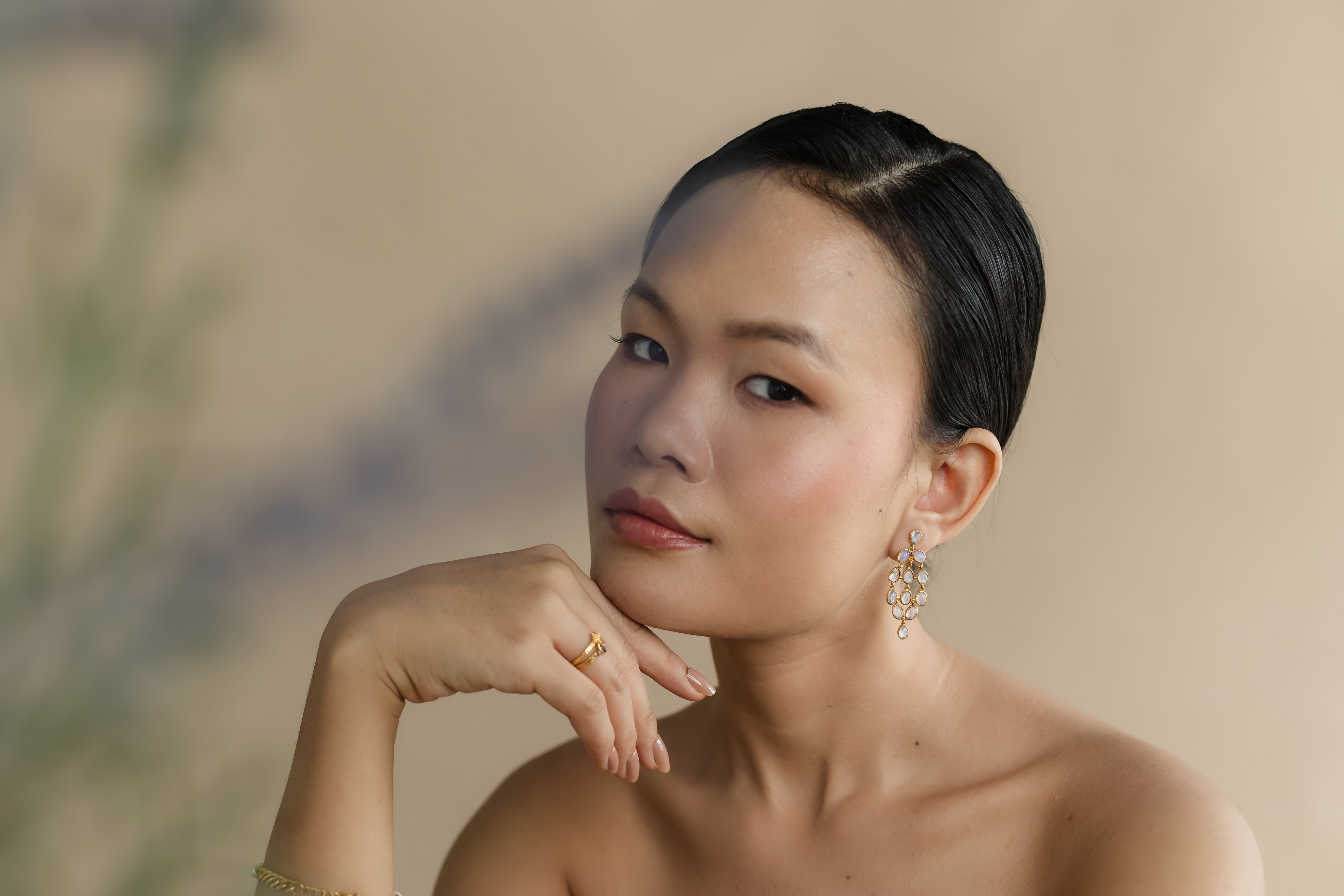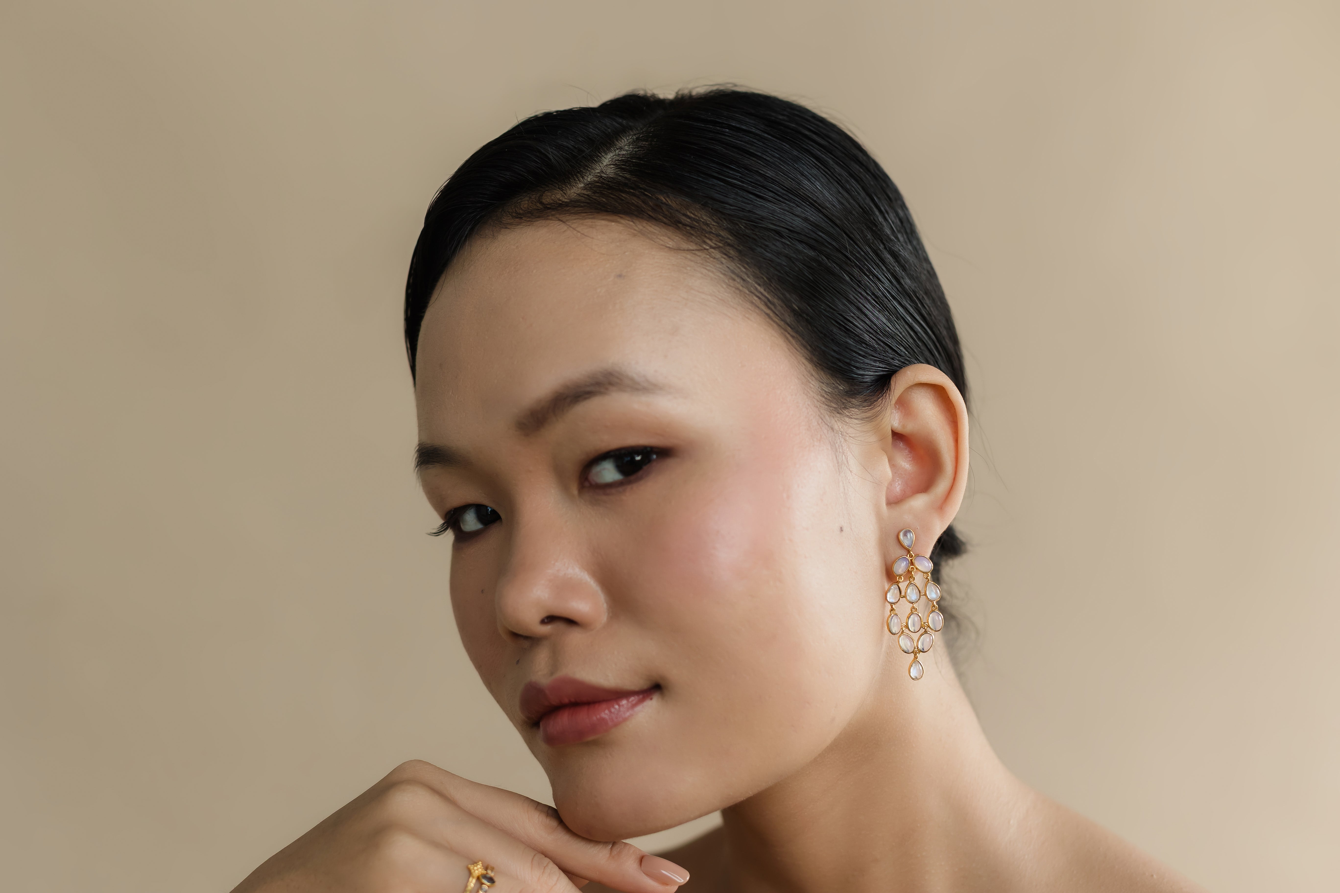 Inspired by cascading waterfalls, this lush design features moonstone and opalite that shimmer with every move. A true statement of fluid elegance.