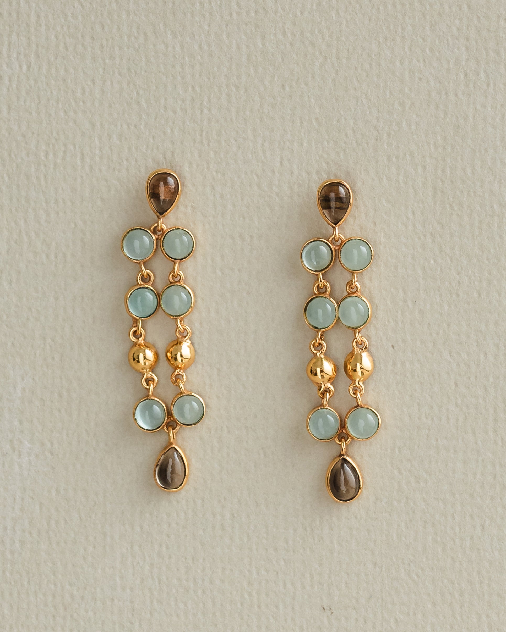 KAI COLUMN EARRINGS IN SMOKY TOPAZ AND AQUA