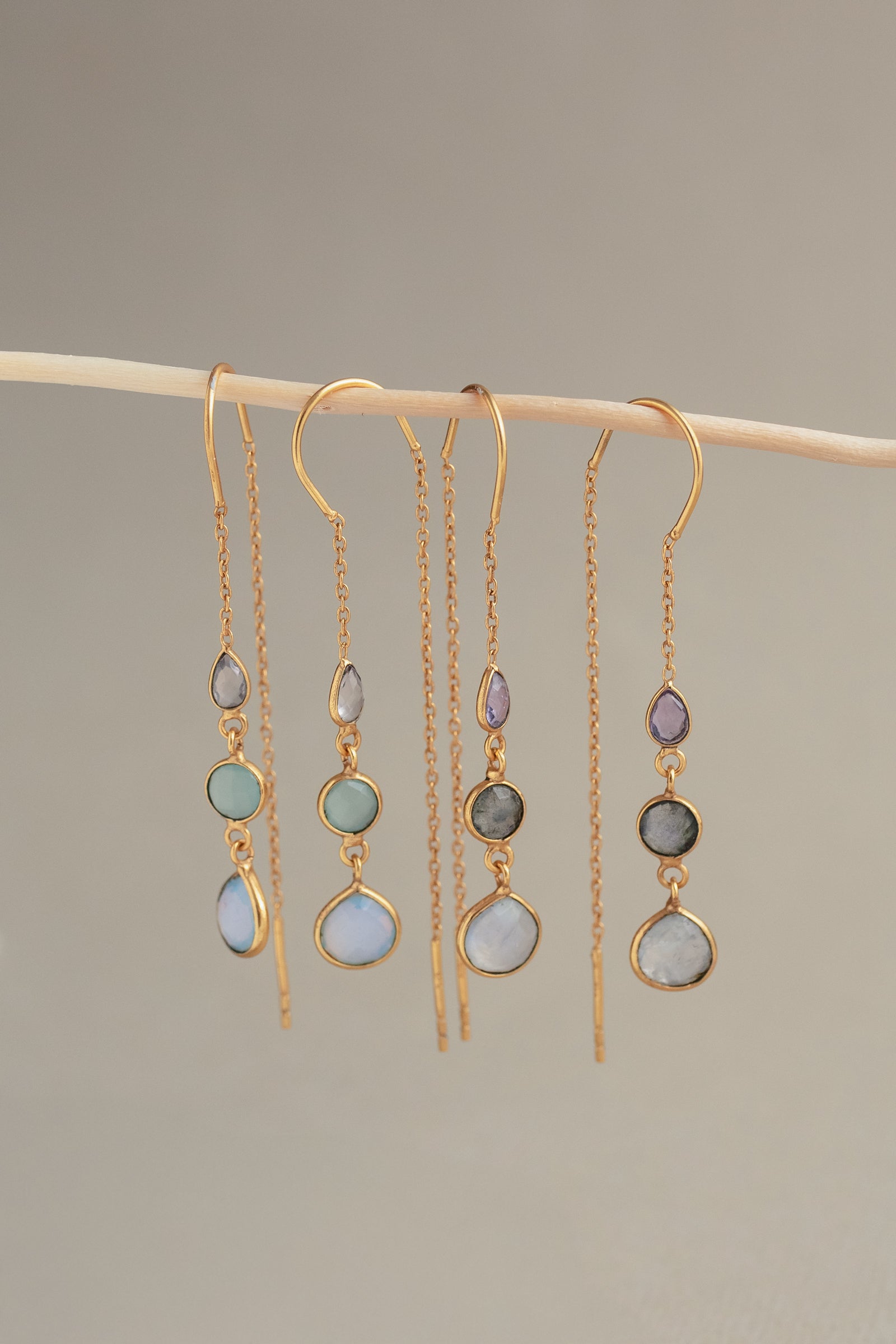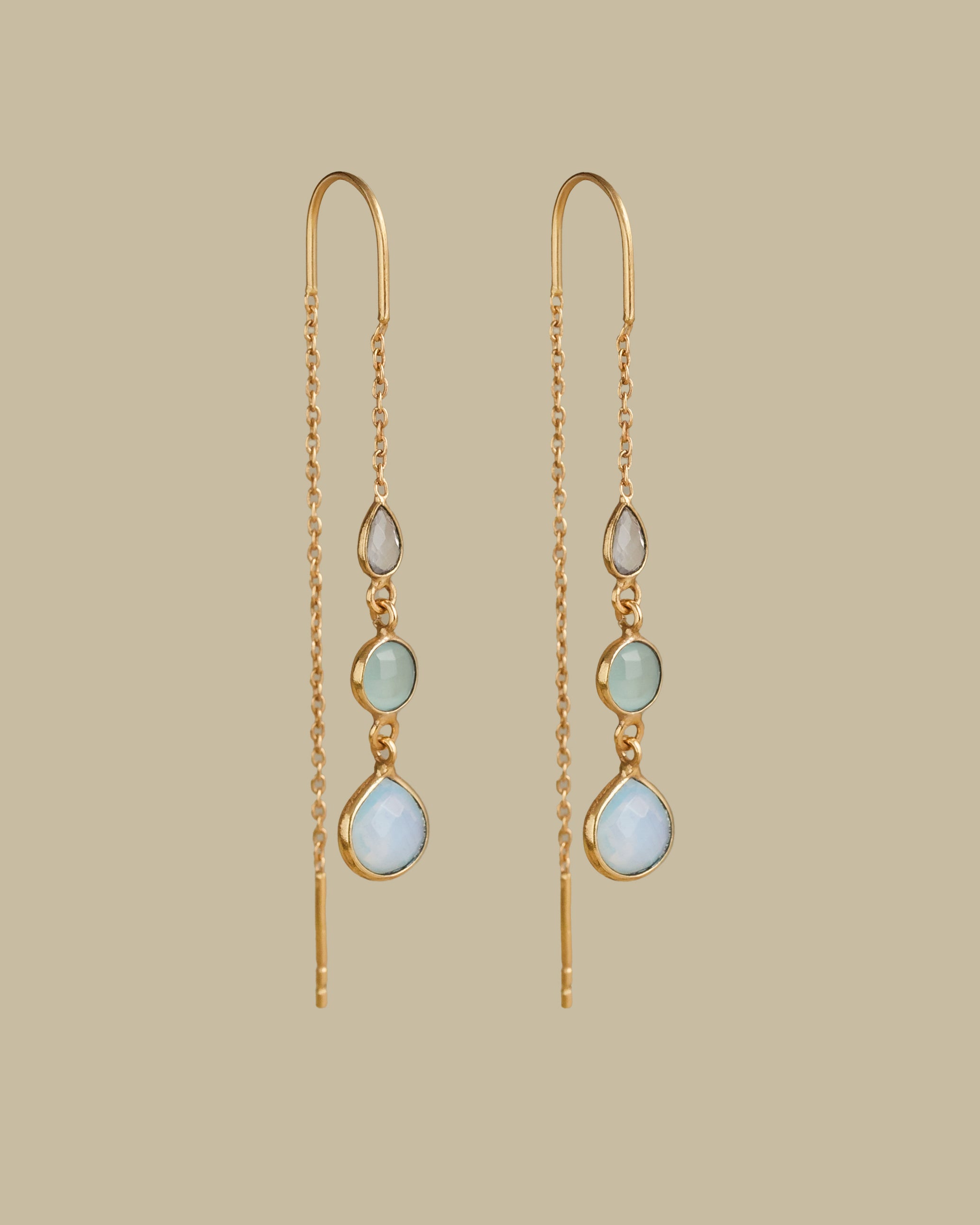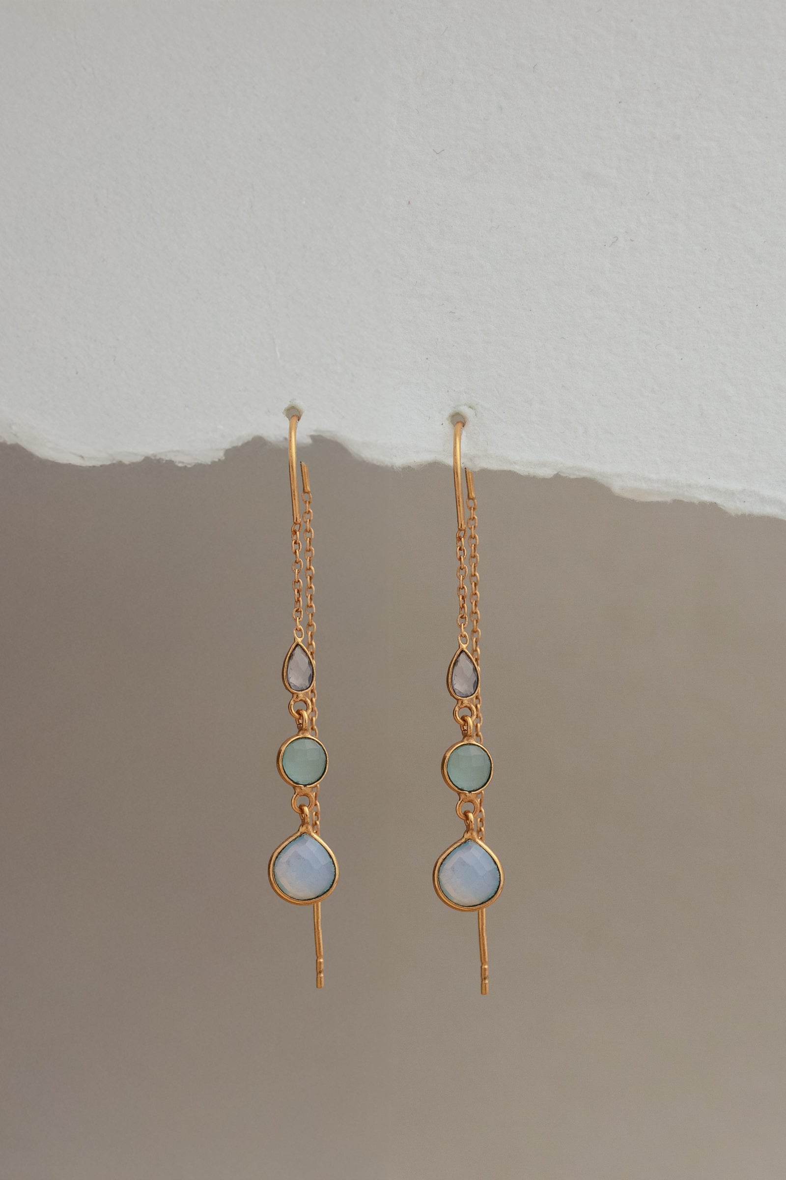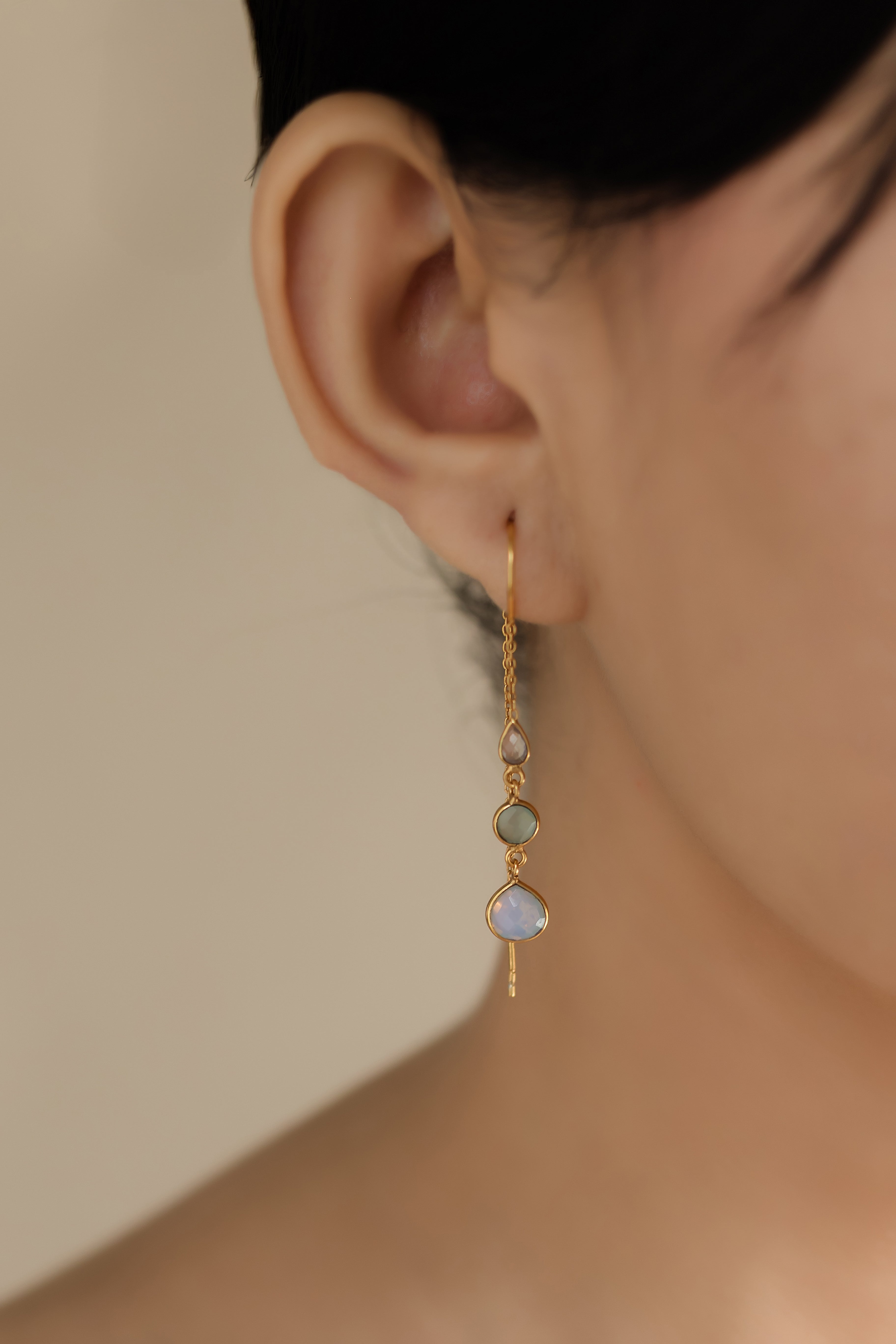 LILY THREADER IN AQUA ROSE QUARTZ AND OPLALITE