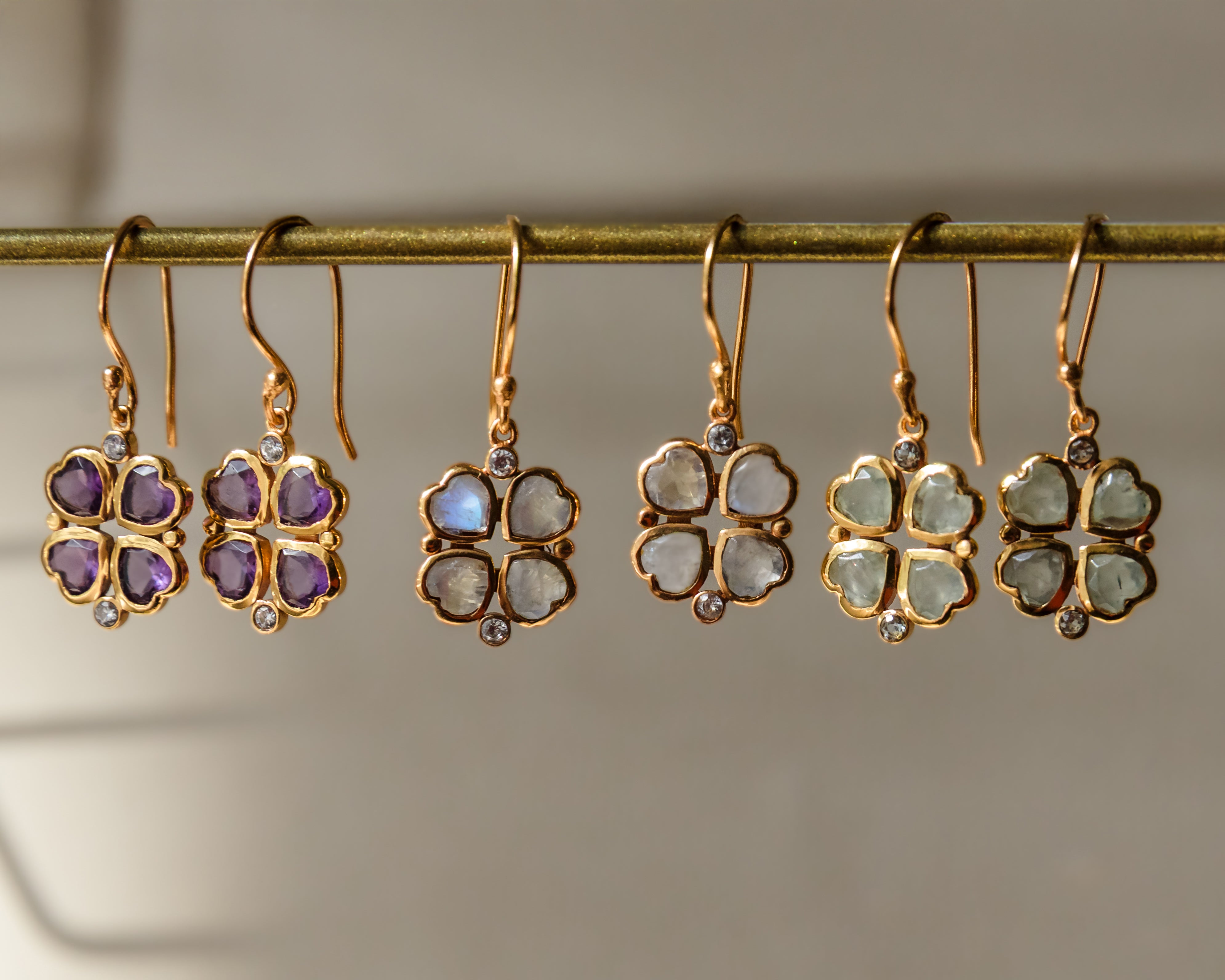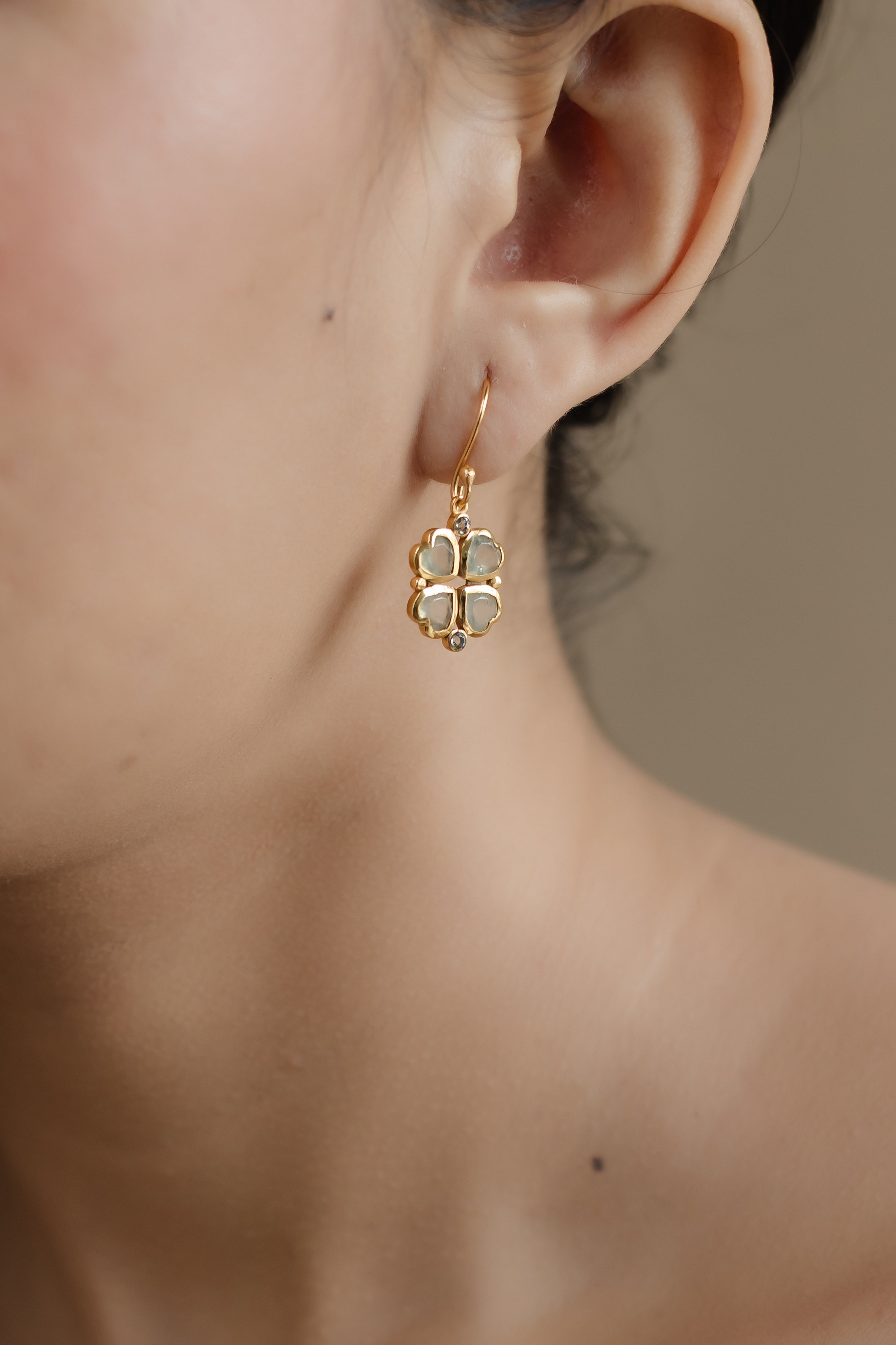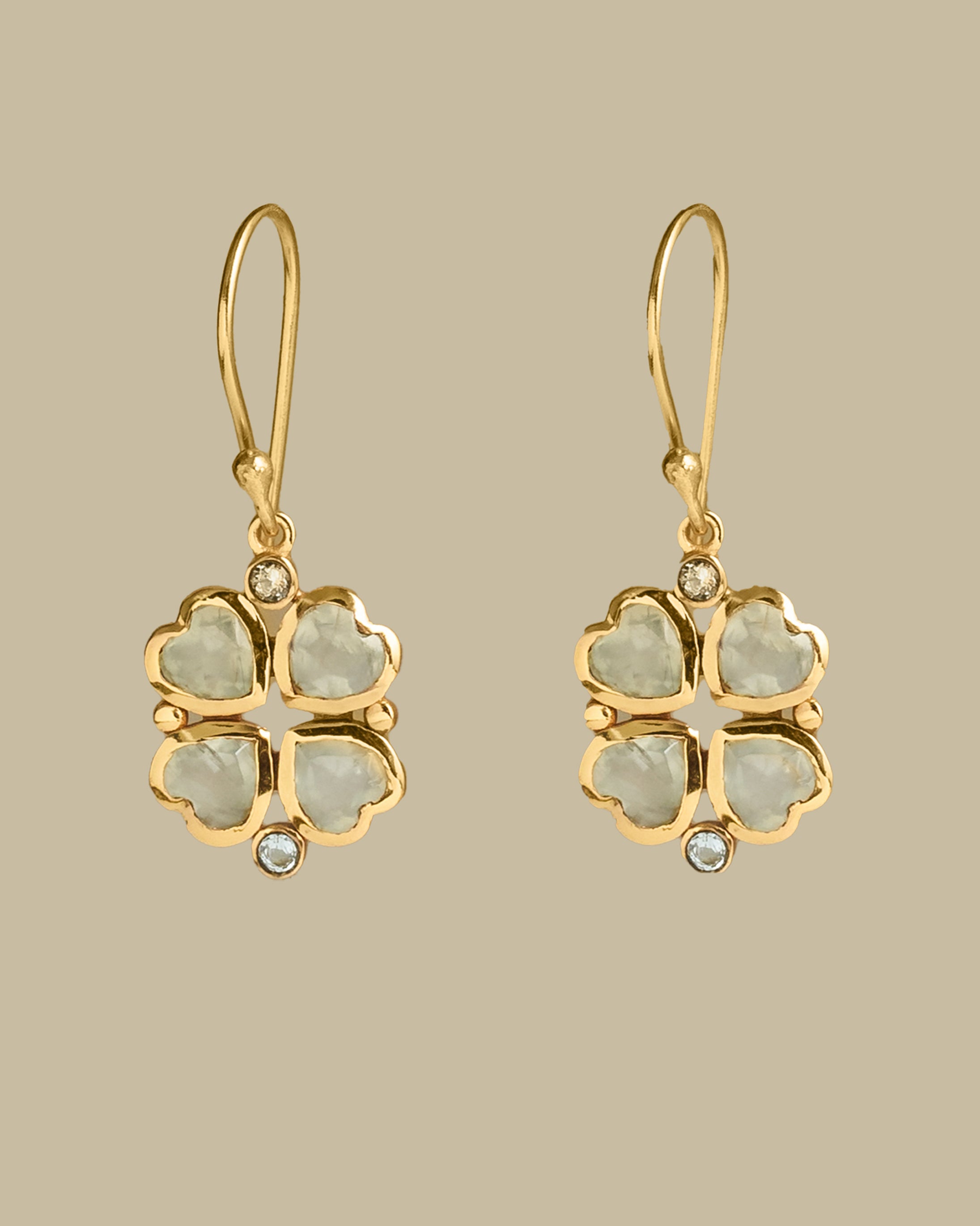 Handshaped artistry makes Lucy your lucky charm for elevated style; featuring stunning Prenite and sparkling cubic zirconia in a handcrafted clover design.