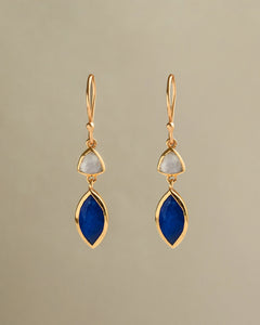 A bold aqua marquise drop encased with a delicate smoky topaz stud – a statement of balance and beauty.