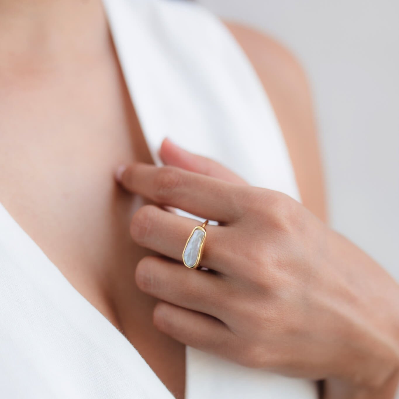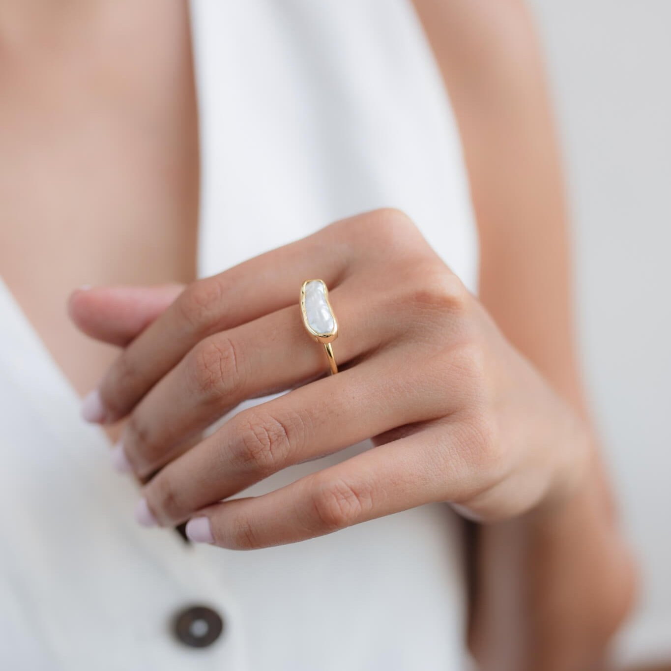 Delicately made to wrap around a natural freshwater pearl, this gold plated ring is the epitome of everyday elegance.