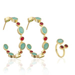 Introducing our handmade Stop and Go hoops, crafted with a dazzling blend of aqua chalcedony and ruby onyx. These earrings are anything but ordinary, offering the perfect touch of versatility for both day and night looks.