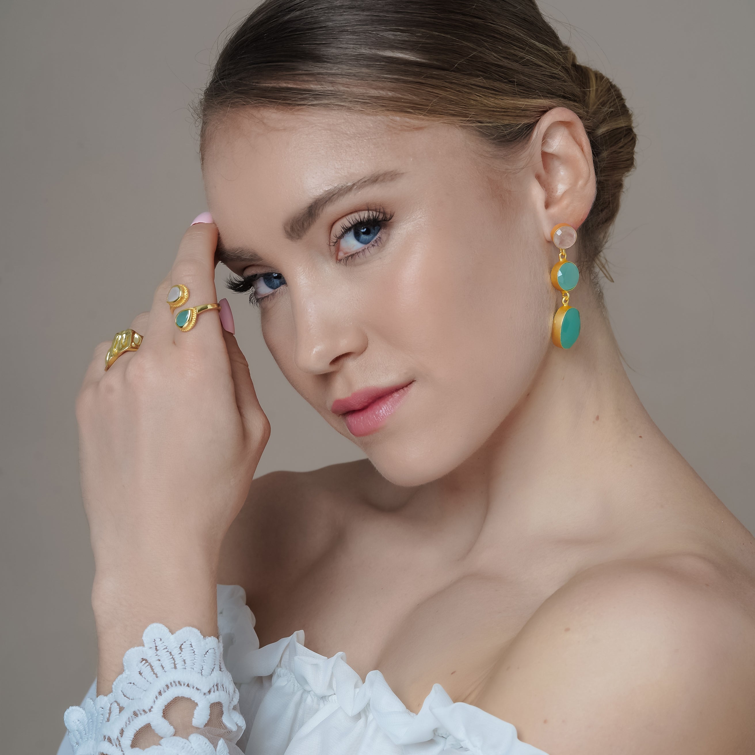 ·      Aqua chalcedony, and rose quartz